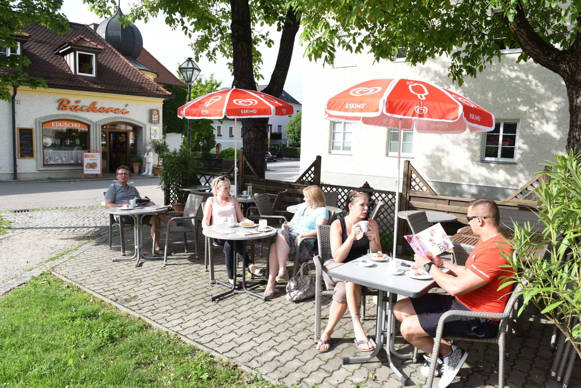 Očarujúca cukráreň s kaviarňou sa nachádza na takzvanom trhovom námestí situovanom v zámockom parku zámku Ulmerfeld.