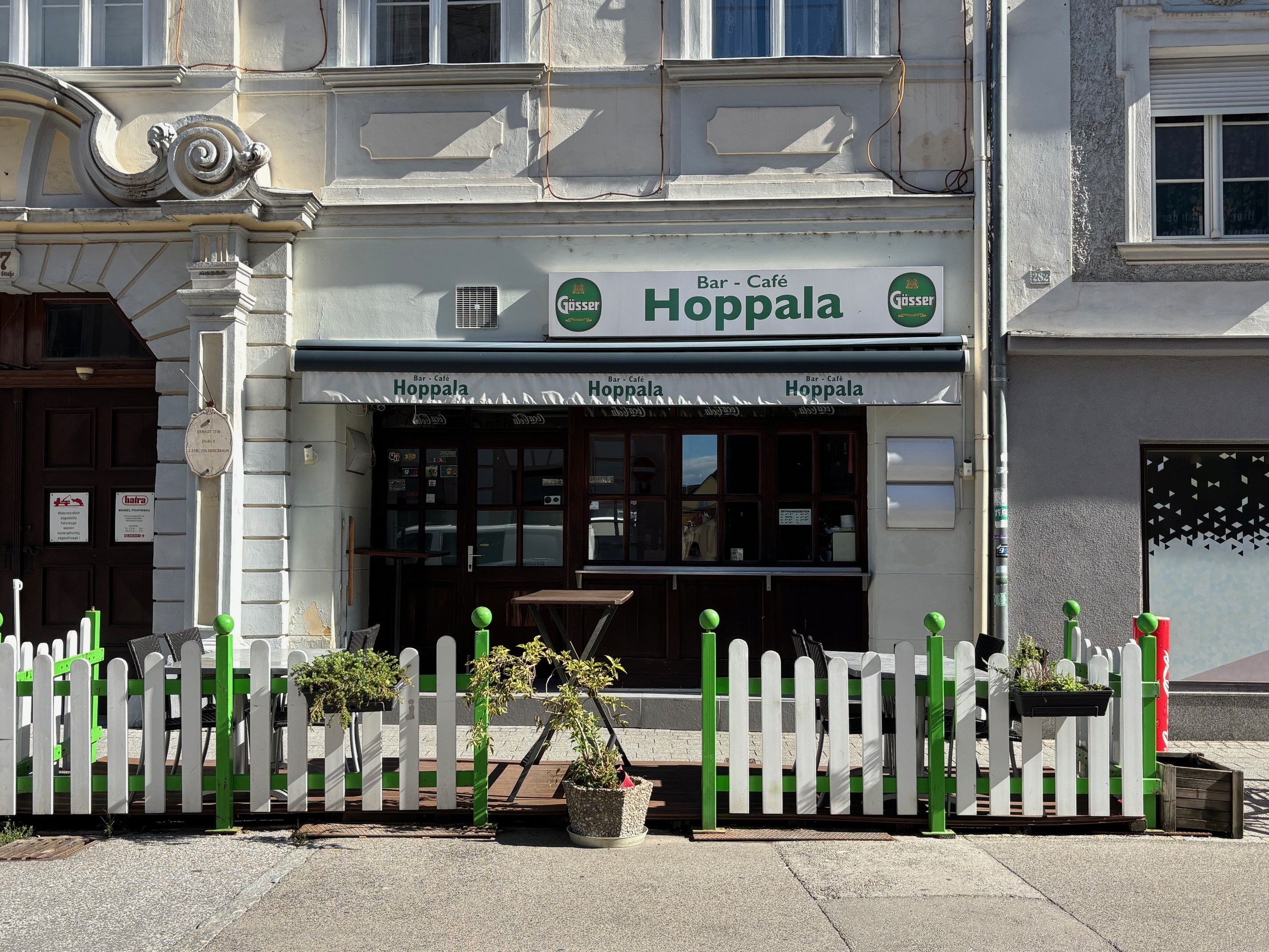 Café bar Hoppala na Wiener Straße vás pozýva na posedenie v príjemnej atmosfére počas celého roka. V teplejších mesiacoch si môžete jedlo a nápoje vychutnať aj vonku.
