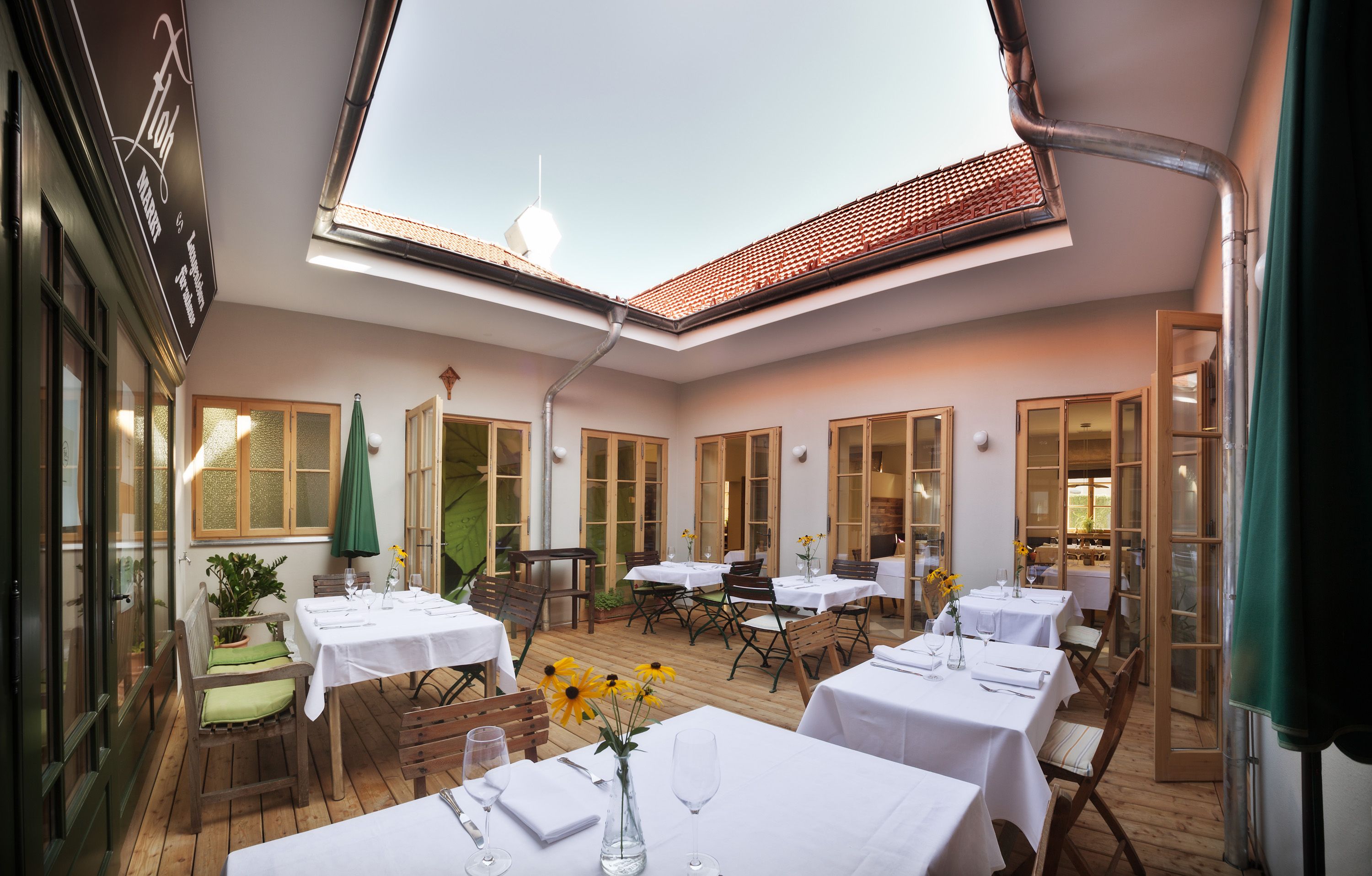 Napriek sofistikovanej kuchyni oplýva reštaurácia Floh útulnou hostinskou atmosférou. Platí to aj pre letné vonkajšie posedenie Donaugartl. Ide o prírodnú oázu, v prípade ktorej aj miestna hostinská kuchyňa na krátko ustupuje do úzadia. Neskôr sa však opäť vráti v plnej sile: pri jedlách z kategórie „Záhrada, pole a lúka“ vedie krémová polievka z topinamburov s topinamburovými čipsami a kávovým olejom, ako aj tatársky biftek z rôznych odrôd repy. Za zmienku stojí aj Floh guláš, pečená kačacia pečeň či sušené hovädzie mäso. Pre dlhší pôžitkársky zážitok sa vám oplatí navštíviť aj miestny obchodík. Hostia si odtiaľto môžu domov poľahky odviesť tunajšie výrobky, medzi ktoré patria oleje, slanina, víno, cestoviny, kompóty, zaváraniny či nakladaná zelenina.