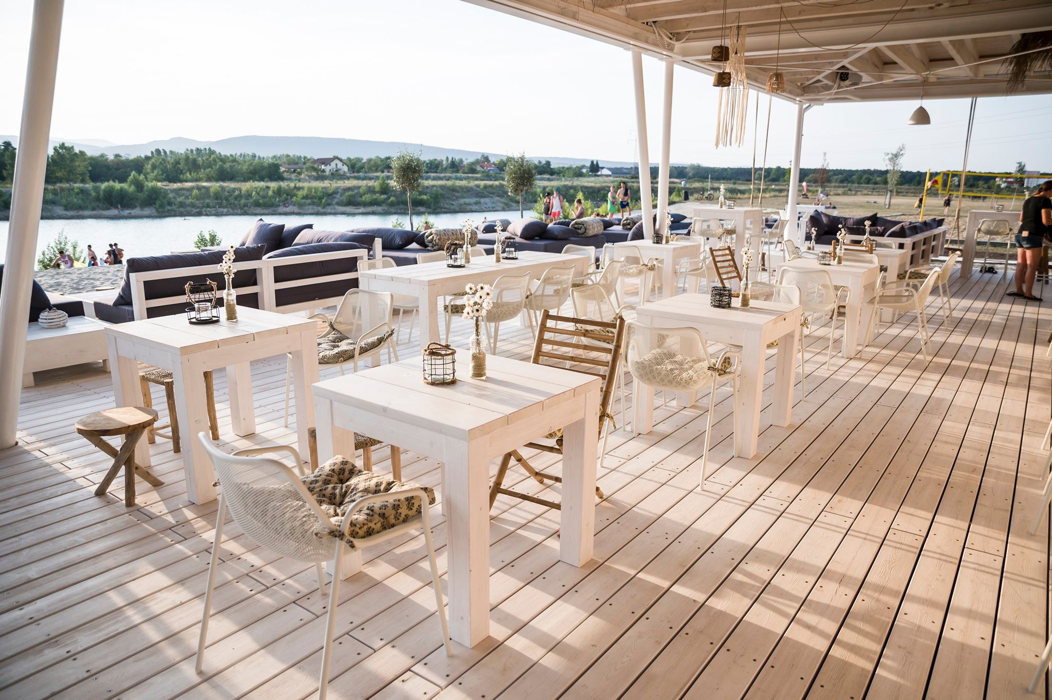 Ukážková piesočnatá pláž vytvára atmosféru pobrežia s výhľadom na horu Schneeberg. Tí, ktorí si rezervujú "Veľkú posteľ", si môžu užiť ležadlo o veľkosti dva krát dva metre a vlastného čašníka.