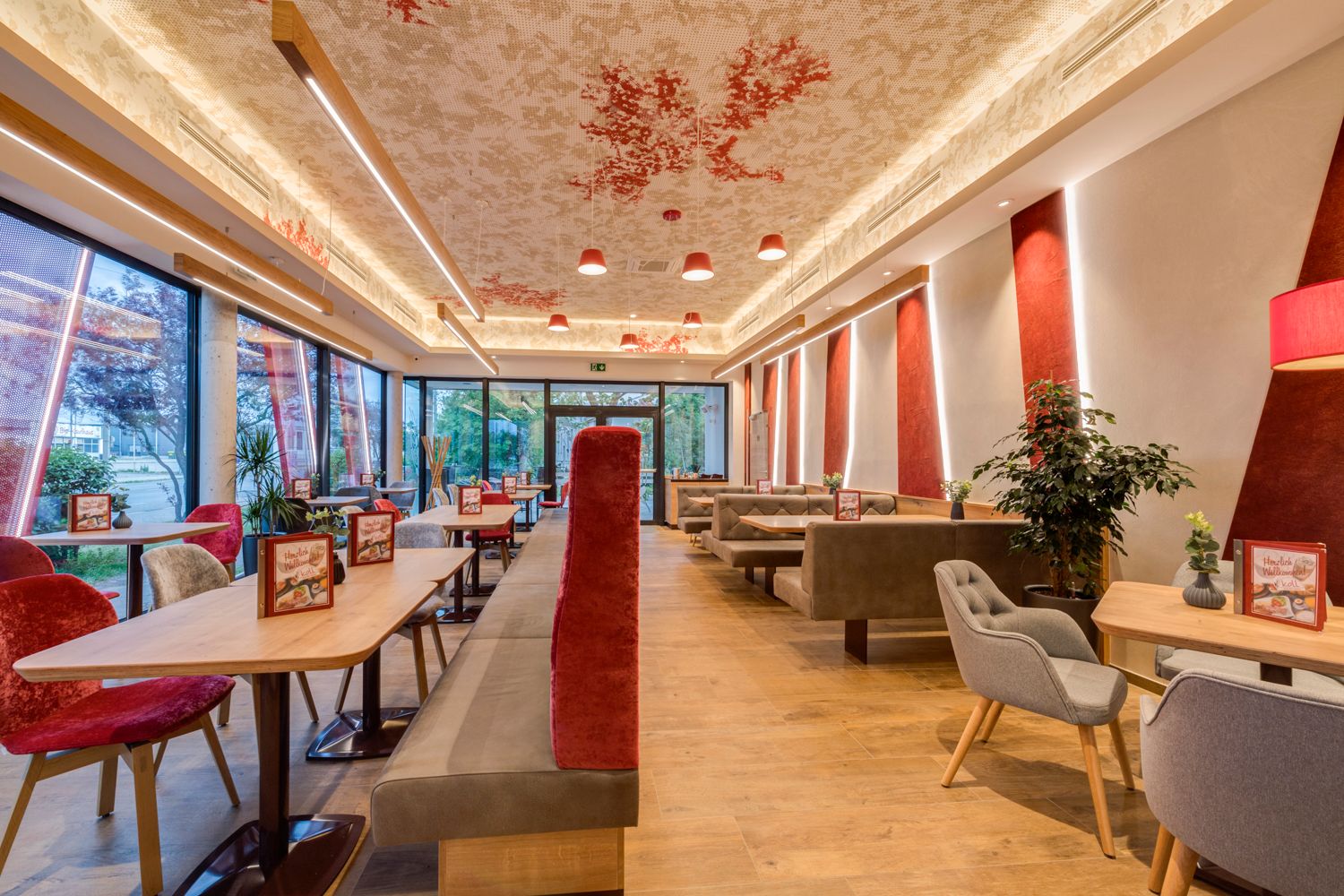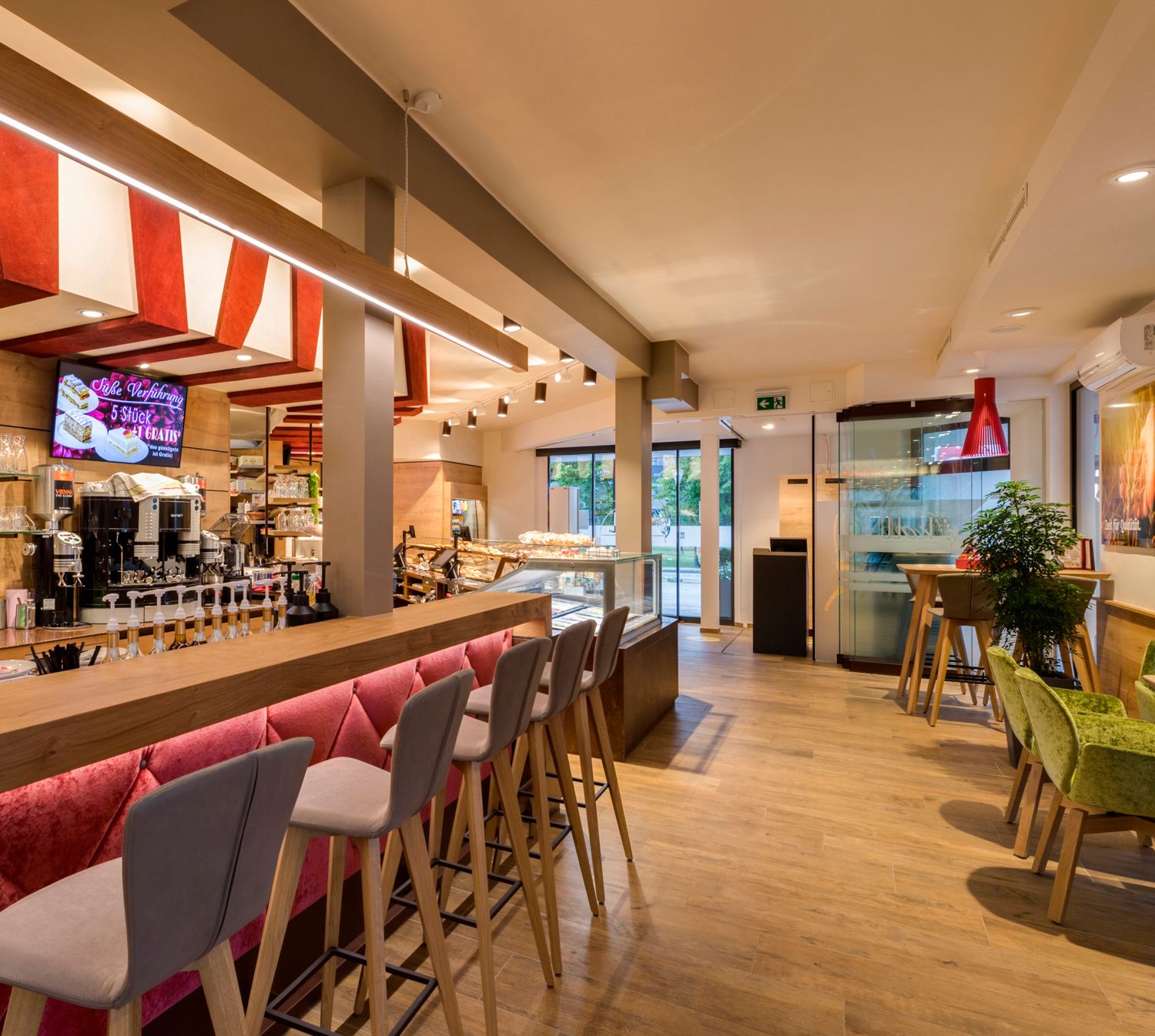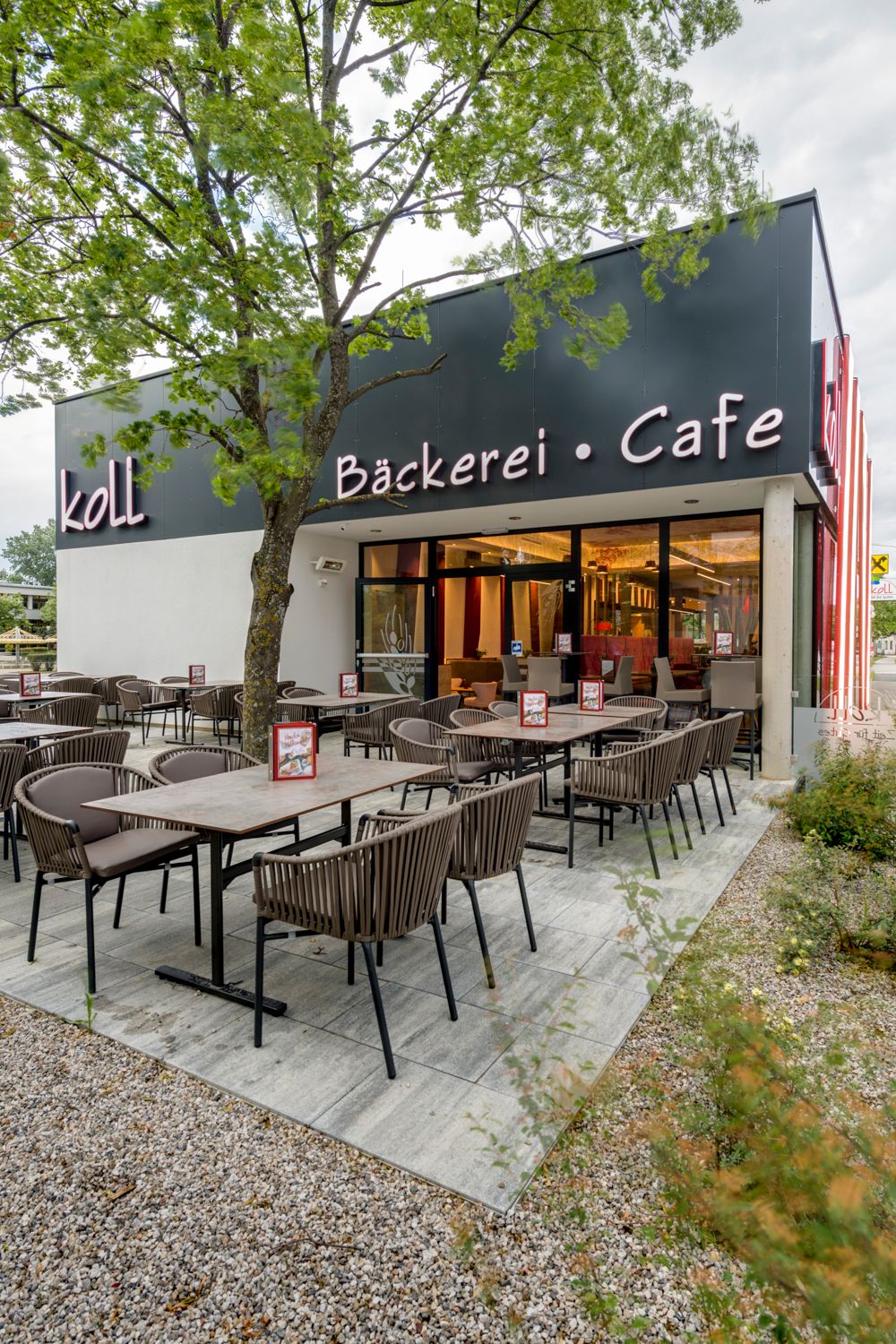 Unser großzügiger Cafehausbereich besticht mit seinem modernem Ambiente & bei Schönwetter lässt sich das herrliche Frühstück, der frisch gebrühte Kaffee oder unser hausgemachtes Koll-Eis wunderbar in großzügigen Gastgarten genießen!