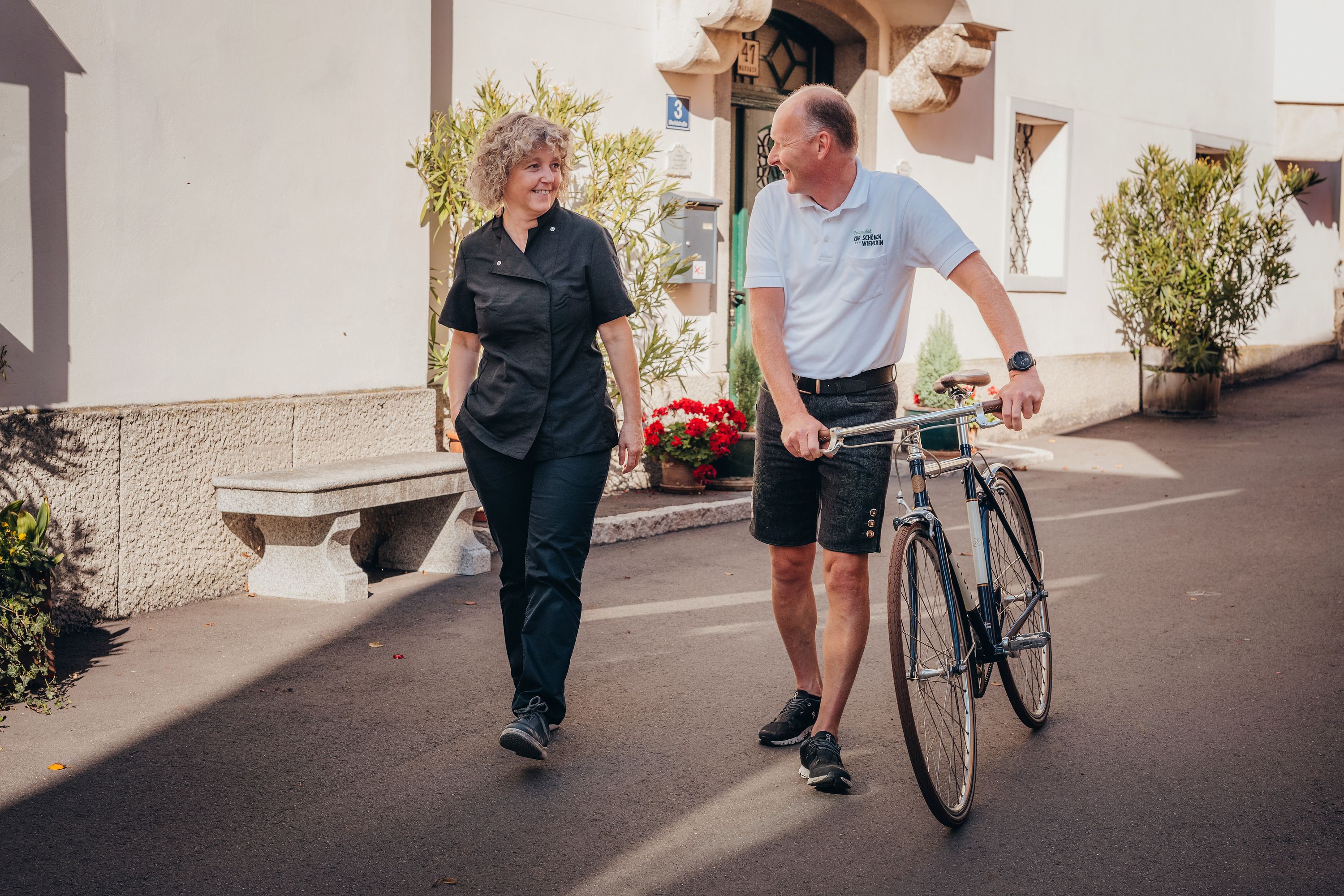 Vidiecky hostinec „Zur schönen Wienerin“ teší hostí nielen pozoruhodnými výtvormi z kuchyne. Vínna karta sa vyznačuje originálnymi wachauskými vínami, ktoré zaručujú obľúbené prepojenie s regiónom. Rozkvitnutá záhrada hostinca poskytuje malú ochutnávku regiónu Nibelungengau. Výletníci, štamgasti aj pôžitkári si z terasy tohto vidieckeho hostinca môžu vychutnávať krásne výhľady a rozjímať. Dunaj odtiaľto môžete spoznávať celkom zblízka. Ešte bližšie sa k nemu dostanete počas príjemnej jazdy po Dunajskej cyklotrase. Tento vidiecky hostinec sa teší veľkej obľube aj vďaka vlastnej garáži na bicykle a ponúka servis aj údržbu bicyklov.