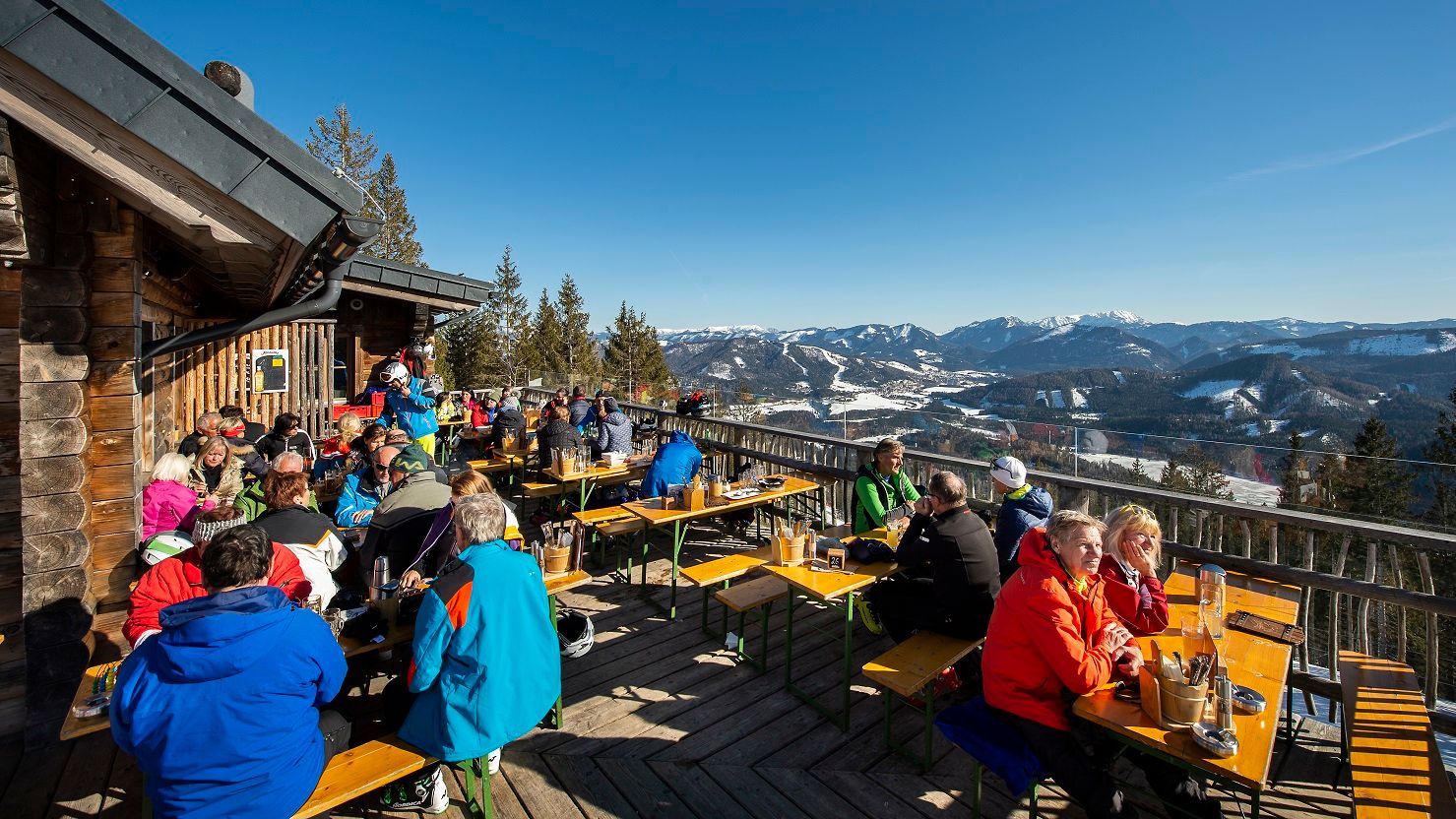 Lokalita? Bezkonkurenčná, priamo na strednej stanici Gemeindealpe Mitterbach. Vychutnajte si typické kúzlo rakúskych chát s nebeským výhľadom.