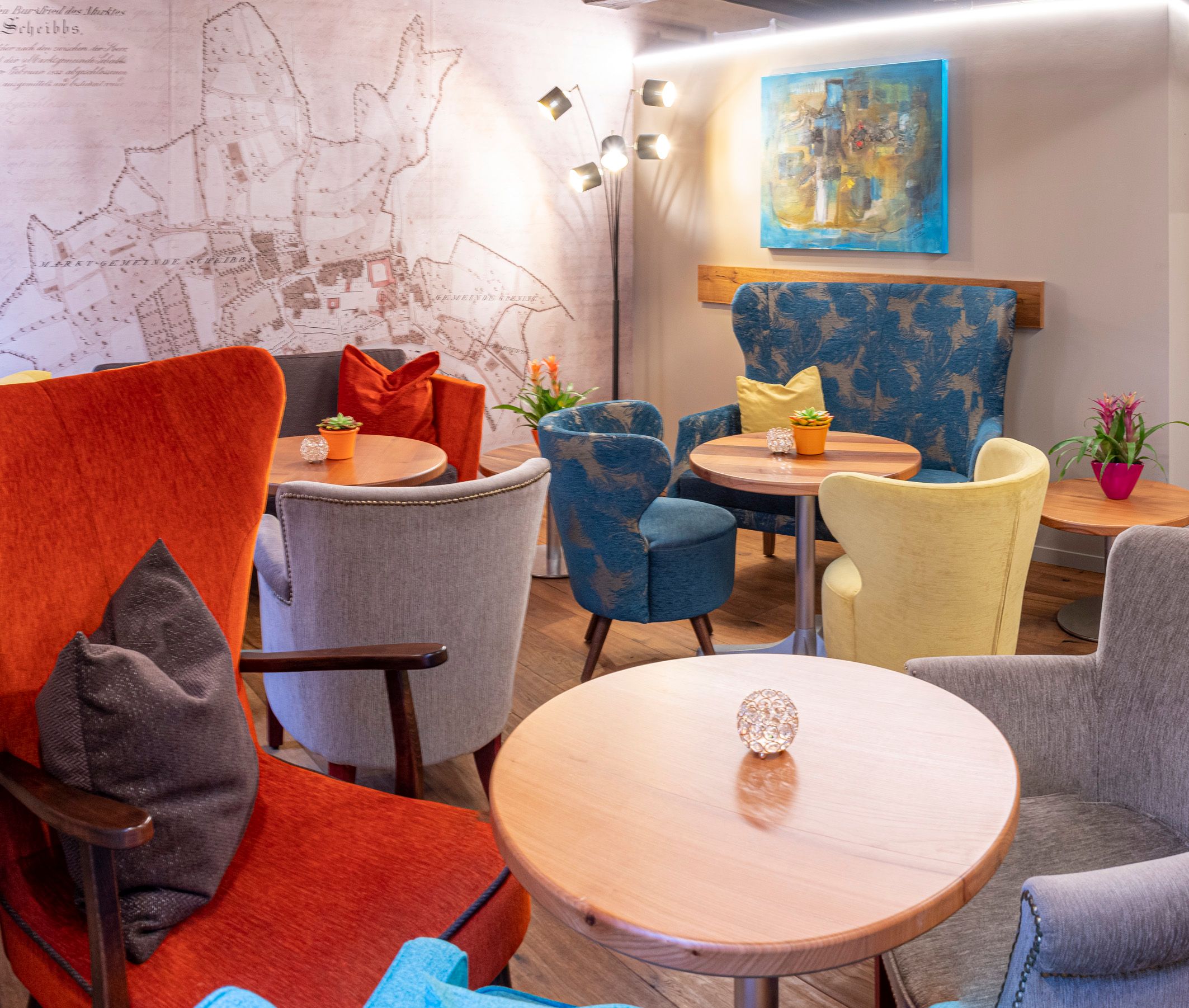 Deň sa v sciBBess začína pestrým raňajkovým menu, obed je pre hostí čerstvo pripravený, popoludní si môžete vychutnať domáce pečivo s kávou baristickej kvality a večer sa sciBBess premení na útulný salónik. Deň môžete zavŕšiť relaxačným drinkom a vychutnať si malé alebo veľké občerstvenie z ponuky barových jedál. V sciBBess sa nachádza aj veľmi zvláštny poklad: známy umelec Prof. Sepp Mayrhuber zvečnil Scheibbs ako pôsobivú nástennú mozaiku. A prvý plán mesta Scheibbs môžete obdivovať aj ako obrovskú nástennú maľbu.