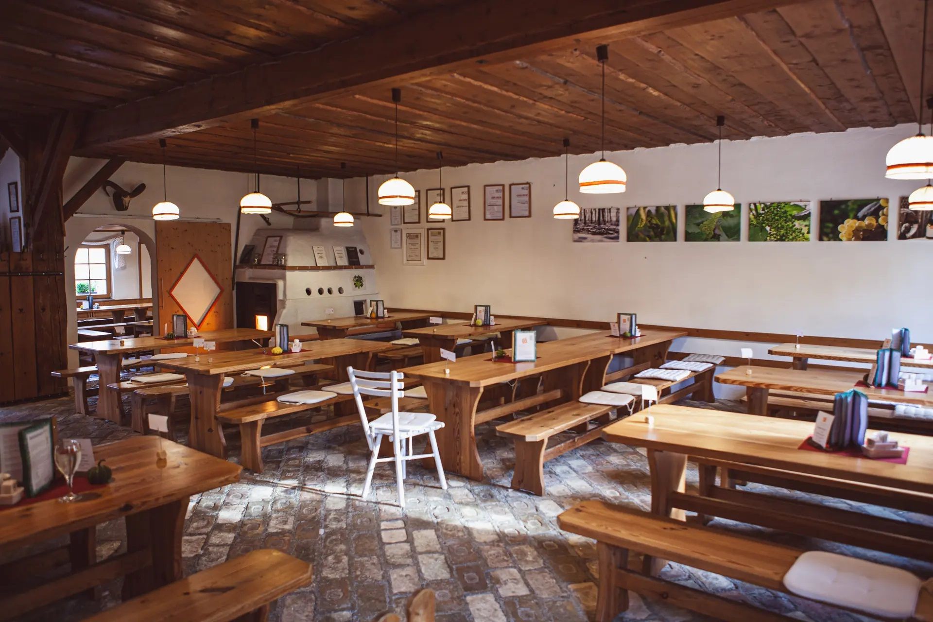 Viecha Buchecker ponúka pôžitok na prízemnej úrovni: v rustikálnom salóne si môžete vychutnať klasickú viechovú kuchyňu a špeciality rodiny, ako napríklad jedlá z diviny z vlastnej produkcie. Ak si chcete posedieť vonku, počas teplých dní je k dispozícii slnečná záhrada, zatiaľ čo v zime vytvára útulnú atmosféru vo vnútri veľká kachľová pec.