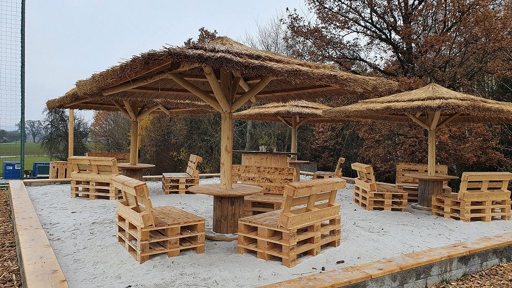 Biberb(e)ach je útulná oddychová zóna (piesková plocha) so stolmi, lavičkami a ochranou pred slnkom.
