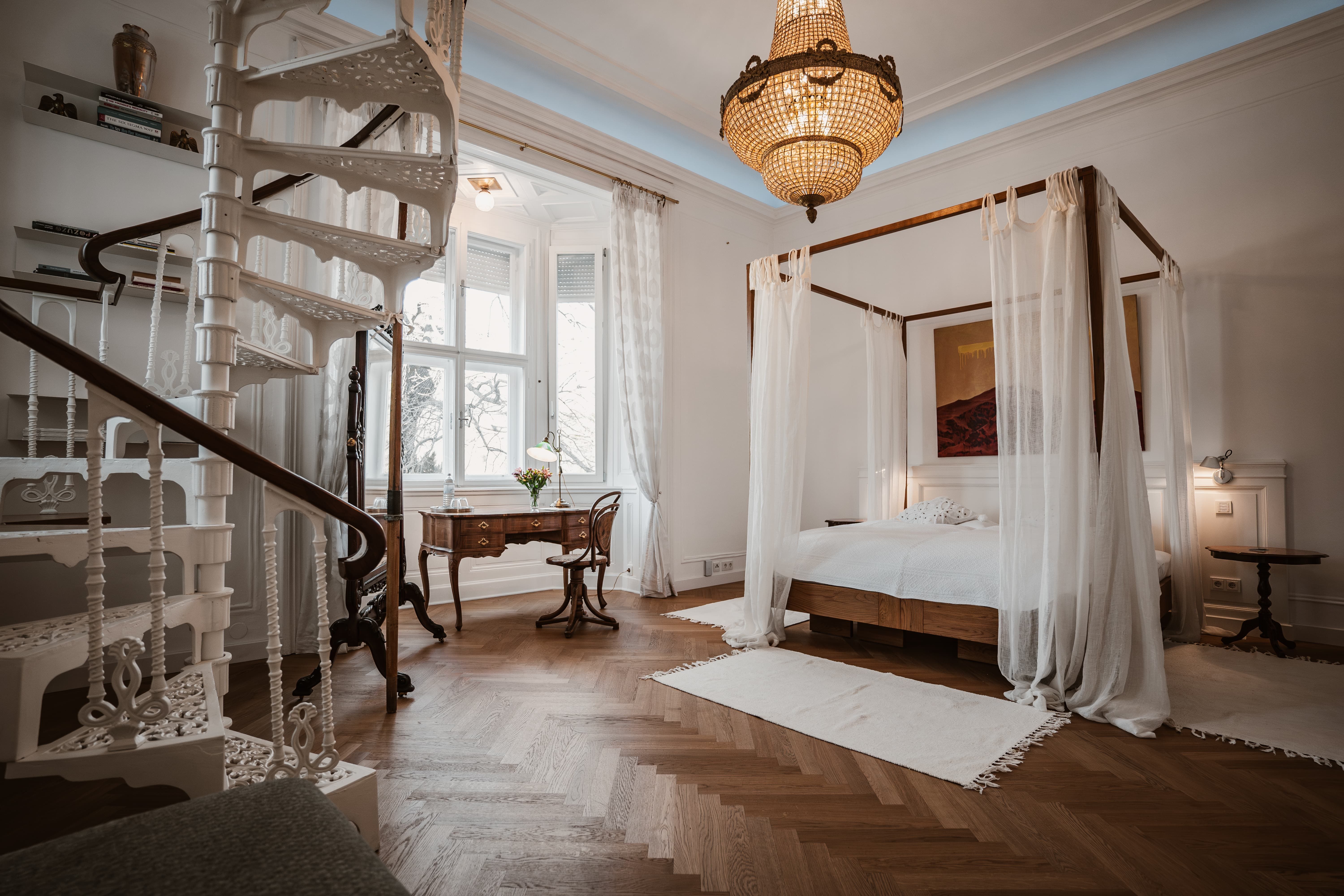 Parkom sa prechádzal cisár František I., Napoleonov brat tu strávil svoje vyhnanstvo a cisár Karol tu oslavoval svoje 18. narodeniny. V 20. rokoch 20. storočia tu Červená arcivojvodkyňa organizovala svoje mystické seansy, ktorých kúzlo je cítiť ešte aj dnes. Na niekoľko nocí sa môžete pridať k slávnym obyvateľom zámku: Apartmány a byty boli štýlovo zrekonštruované s použitím najkvalitnejších materiálov a ponúkajú elegantné útočisko. Vyberte sa na prehliadku so sprievodcom a preskúmajte podzemné jaskyne a "Chrám noci", jedinečný zážitkový svet z 18. storočia, ktorý inšpiroval slobodomurárov a osvietenských filozofov. Toto miesto obklopené prastarými obrovskými stromami, prírodnými vodnými tokmi a rozľahlými lúkami zostáva opradené legendami, exkluzívne a fascinujúce.