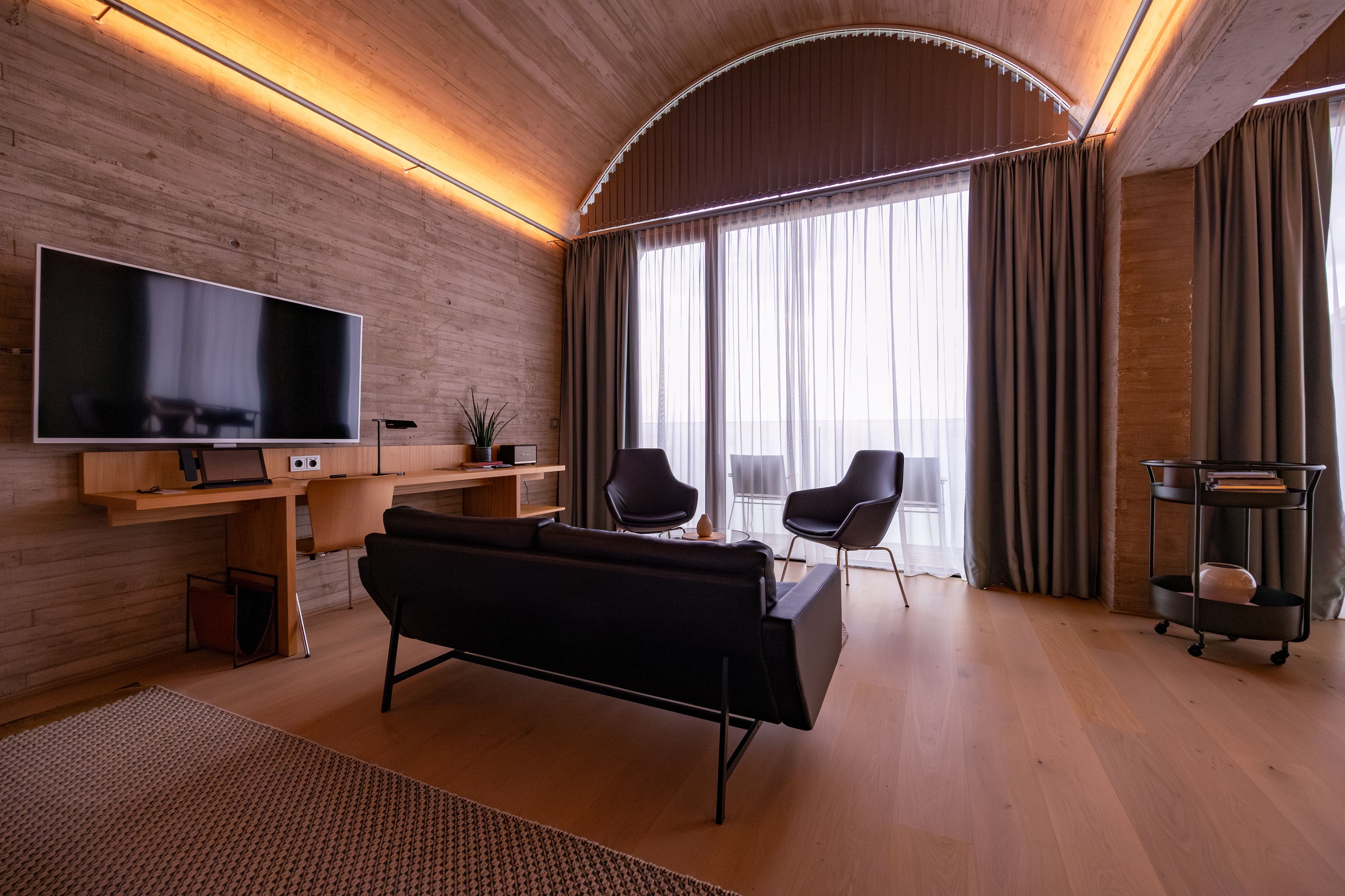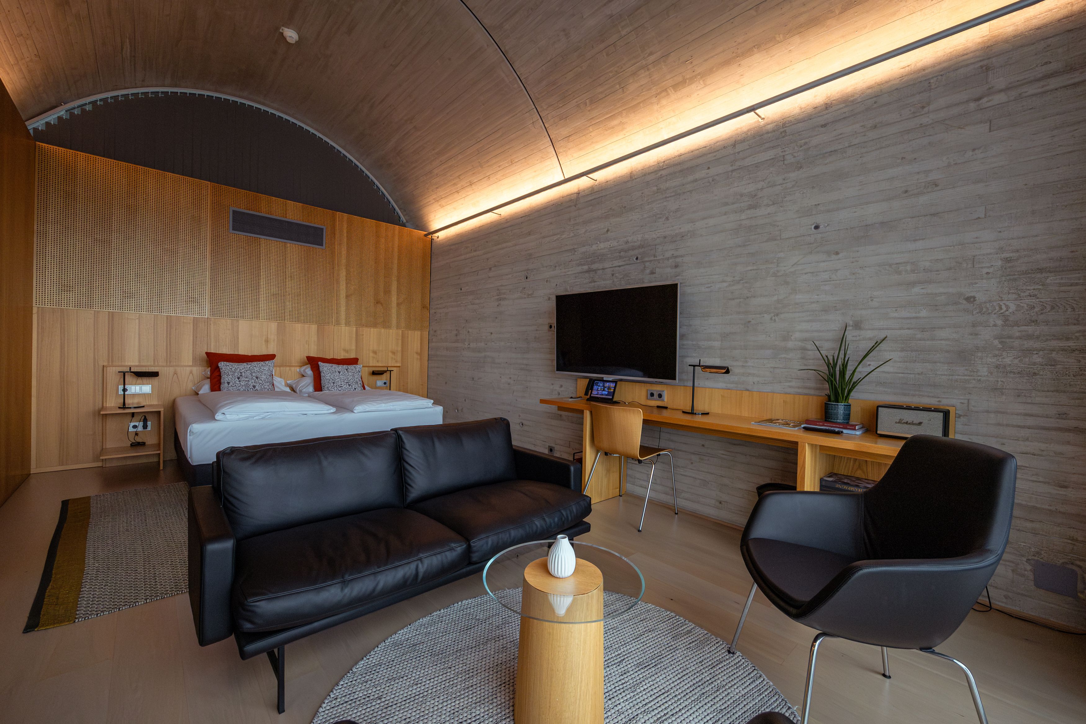 Budova, ktorú navrhol svetoznámy americký architekt Steven Holl, prináša do tradičnej vinárskej oblasti moderný životný štýl. Napriek svojim rôznym kategóriám ponúkajú všetky izby nádherný výhľad a útulné vybavenie. Návštevníci, ktorí sa vyčerpali jazdou na bicykli, pešou turistikou či ochutnávkami pozdĺž vínnej cesty, môžu načerpať nové sily v tunajšej reštaurácii či bare, prípadne sa zregenerovať v kúpeľnej zóne pri masáži, kozmetickej procedúre alebo v saune. Dobrým nápadom je vždy aj kúpanie v miestnom prírodnom jazierku alebo vo vyhrievanom vonkajšom bazéne.