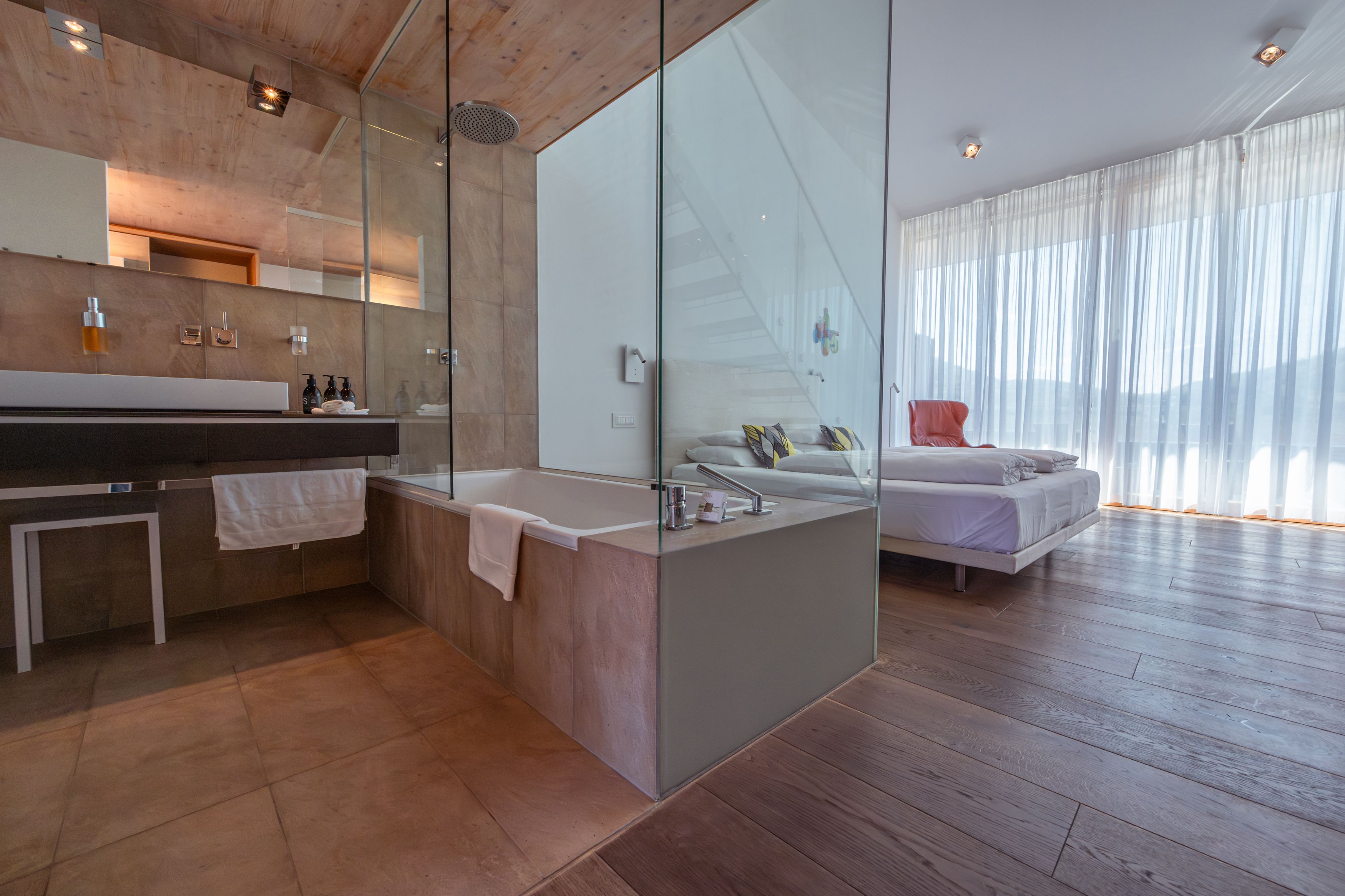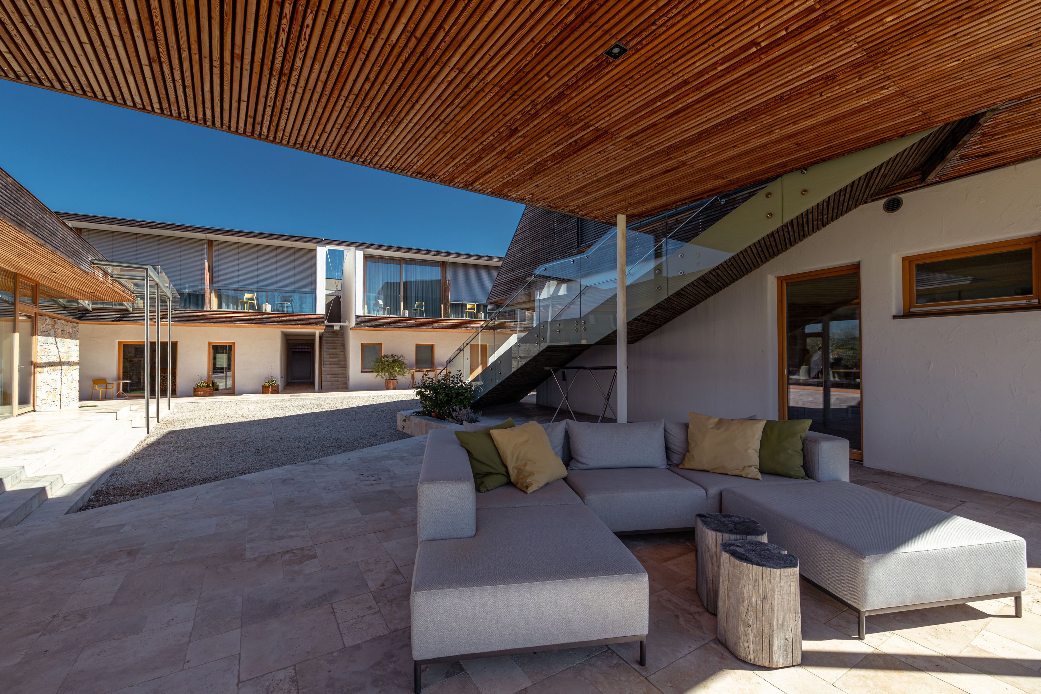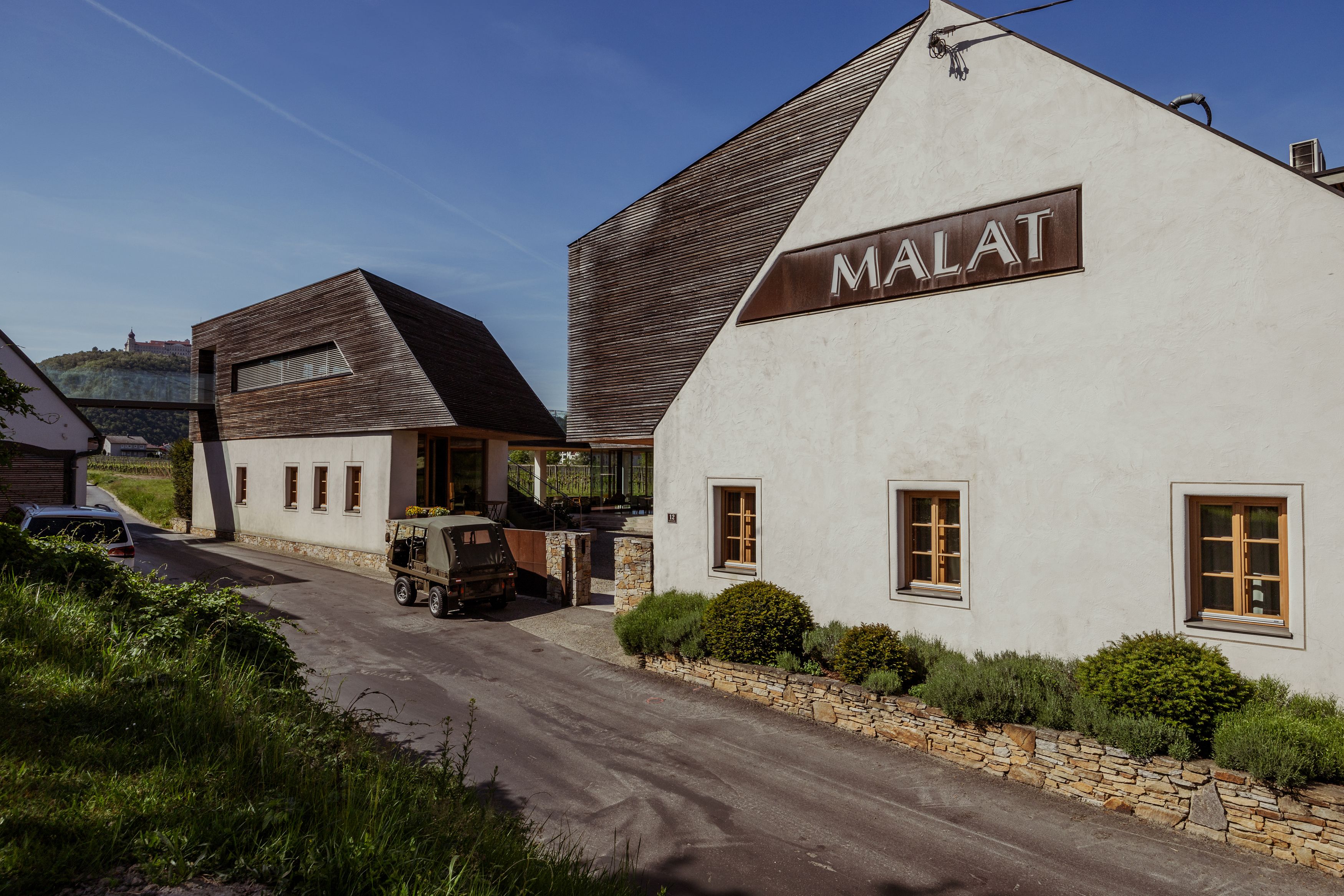 Hneď vedľa vinárstva Malat bol starý hrnčiarsky dom veľkoryso prestavaný na hotel – celkom moderne, no s použitím množstva dreva a kameňa, ktoré vzdávajú poctu starým časom. Ponúka celkovo 10 apartmánov s kvalitným nábytkom značky Wittmann a úchvatný výhľad na opátstvo Stift Göttweig aj okolité vinice. Hostia sa tu majú cítiť ako doma. Preto si v hoteli jednoducho môžete z chladničky vziať fľašu vína, pustiť si platňu a na terase si dopriať jeden či niekoľko pohárikov vína.