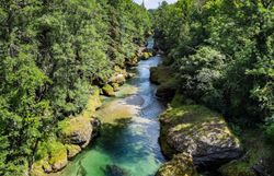 Tyrkysovomodrá a vrytá hlboko do zeme – rieka Erlauf si tu divoko a zároveň romanticky razí cestu cez konglomerátové skaly.