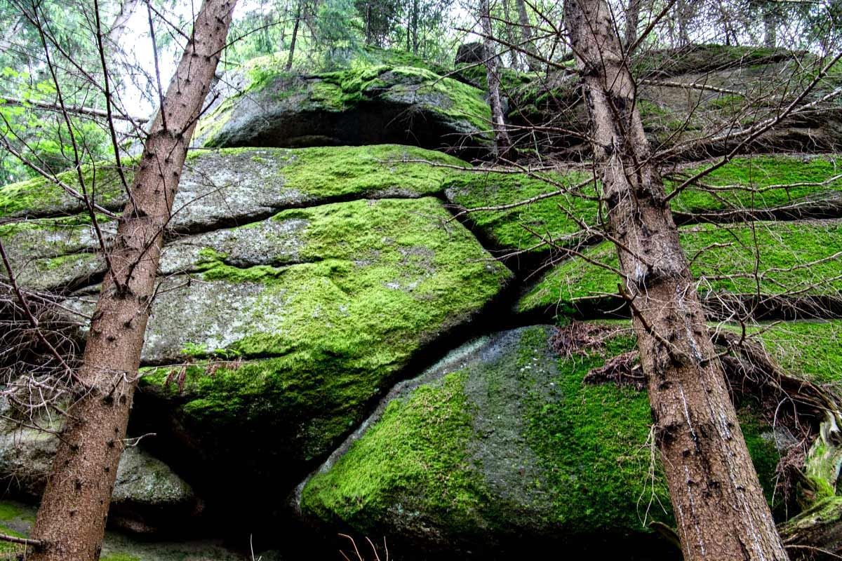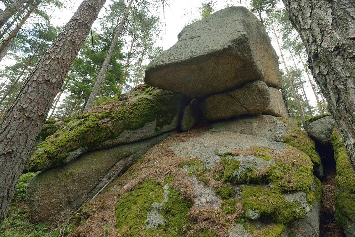 "Fichtenschluff", "Pilzstein", "Steinerner Torbogen", "Wuchtelstein", "Gletschermühle" sú názvy bizarných skalných útvarov, ktoré sa naozaj oplatí vidieť. "Kamenný oblúk" je mimoriadne vzácny geologický úkaz, pretože oblúky sa zvyčajne nachádzajú vo vápencových horách. Žulový oblúk sa tiahne medzi dvoma veľkými balvanmi. Môžete sa prejsť po jeho spodnej časti aj po jeho vrchole. Z oblúka sa môžete pozrieť dole na "Wuchtelstein", ktorý vyzerá presne tak, ako jeho názov. "Gletschermühle" je približne 12 metrov vysoká žulová veža so zvláštnymi, dutými priehlbinami pripomínajúcimi ľadovcový mlyn. Skalný útvar však nemá nič spoločné s dobou ľadovou: Bizarné žulové tvary vznikli zvetrávaním vyše 350 miliónov rokov starého primárneho skalného masívu. ("Skutočné" ľadovcové mlyny sú špirálovité priehlbiny v ľade, ktoré vznikli topením vody).