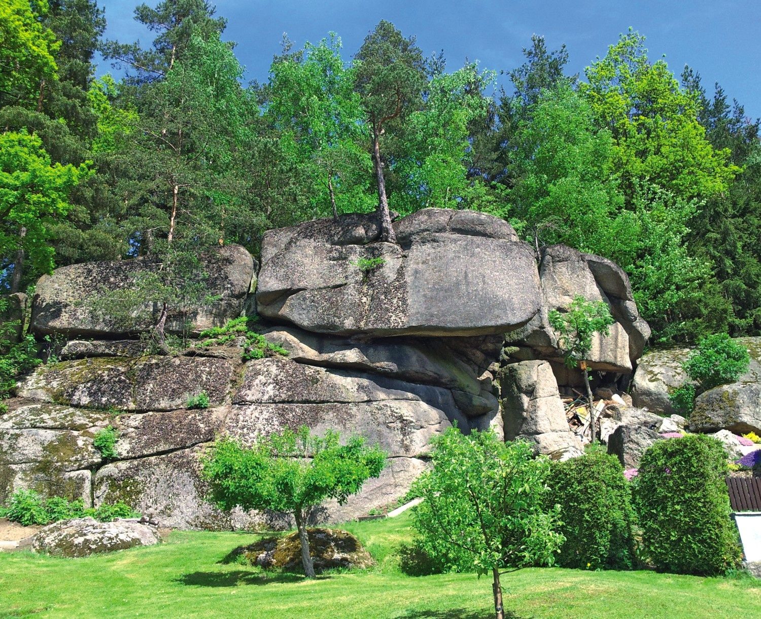 Hneď vedľa obecného úradu prejdite po Kirchenbergu na ulicu Pürbacher Straße, prejdite ju a pokračujte doľava k reštaurácii Gasthaus Gruber. Tam odbočíte doprava na ulicu Schremser Straße, prejdete cez most Braunaubach a hneď potom odbočíte doľava na Blockheideweg. Potom prejdete okolo Hubertussäule a odbočíte doprava do 2. jazdného pruhu. Potom sa dostanete na hlavnú cestu, kde odbočíte doprava a po približne 100 metroch odbočíte doľava pod cestu. Za podchodom odbočte opäť doľava. Teraz pokračujte po ceste v priamom smere pozdĺž hlavnej cesty. Po približne 400 metroch sa opäť dostanete k Braunaubachu a pokračujte po ceste doprava. Teraz prejdete okolo dvoch malých rybníkov medzi poliami a lúkami, až sa dostanete k vedeniu vysokého napätia. Priamo pod elektrickým vedením odbočuje cesta doľava na okraj lesa. Pokračujte po ceste vedúcej napoly vpravo popri lese, až kým neprídete k označenej križovatke "Fa. Backhausen, Märchengrotte". Tu odbočte doľava, prejdite vysokým lesom a potom mystickým rozprávkovým lesom k potoku Braunaubach.