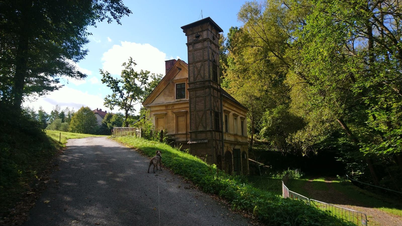 Teraz sa dajte pozdĺž potoka doprava, až kým neprídete k mostu. Tu sa nachádza textilná továreň Backhausen, ktorá tu od roku 1870 vyrába vysokokvalitné čalúnnické a dekoračné látky. Oproti mostu môžete navštíviť rozprávkovú jaskyňu v kamennej jaskyni. Za mostom odbočte doprava a prejdite do kopca okolo starej továrenskej hasičskej stanice. Pred dvojposchodovou obytnou budovou odbočuje trasa doľava smerom k hlavnej ceste, okolo prícestnej kaplnky. Pokračujte po sprievodnej ceste vľavo, okolo firmy Silbernagel a čističky odpadových vôd k podchodu. Teraz musíte prejsť pod hlavnou cestou, odbočiť doprava a prejsť okolo vinárne. Krátko za vinárňou odbočte doľava do ulice Friedhofstraße. Cesta vás povedie popri komunitnom environmentálnom združení Gmünd (GUV) a cintoríne. Na ďalšej väčšej križovatke odbočte doprava popri hasičskej zbrojnici (základná škola postavená v roku 1903 je po pravej strane) a choďte do kopca ku kostolu.