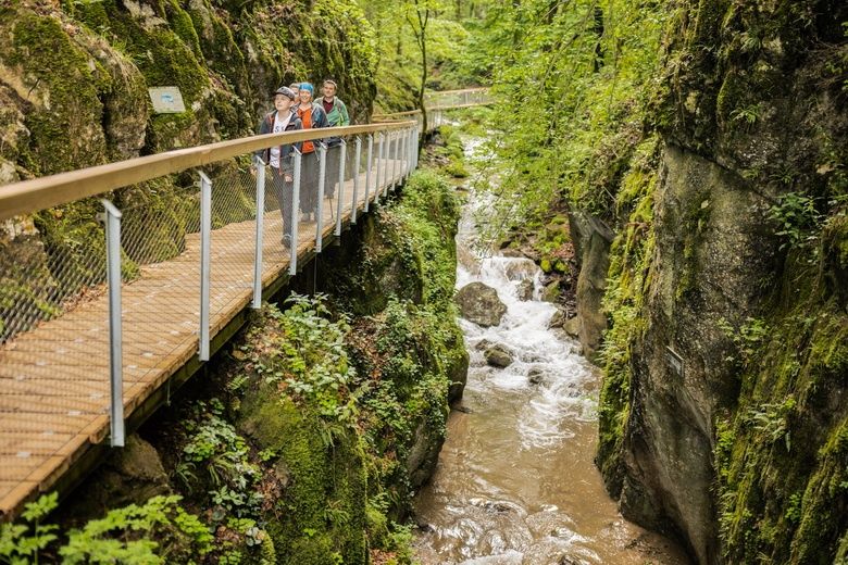 Okružná túra z WellnessWelt cez idylickú roklinu Johannesbachklamm s možnosťou občerstvenia v hostinci v rokline. Trasa vedie cez lávky, schody a mosty k útulni Gerhartl, potom pokračuje cez Eichberg s nádherným výhľadom na obec. Dva varianty (1a/1b) vás zavedú späť do WellnessWelt. Možný aj zo železničných staníc Willendorf alebo Rothengrub.