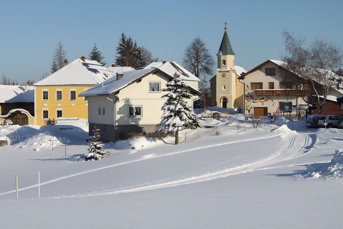 Obtiažnosť červená (stredná), dĺžka 10 km, prevýšenie 120 m, celkové stúpanie 190 m Táto trasa odbočuje z dedinskej lúky na juh, prechádza okolo dvoch rybníkov a je viac na slnečnej strane. Iba stúpanie po 6. - 8. km je v lese.