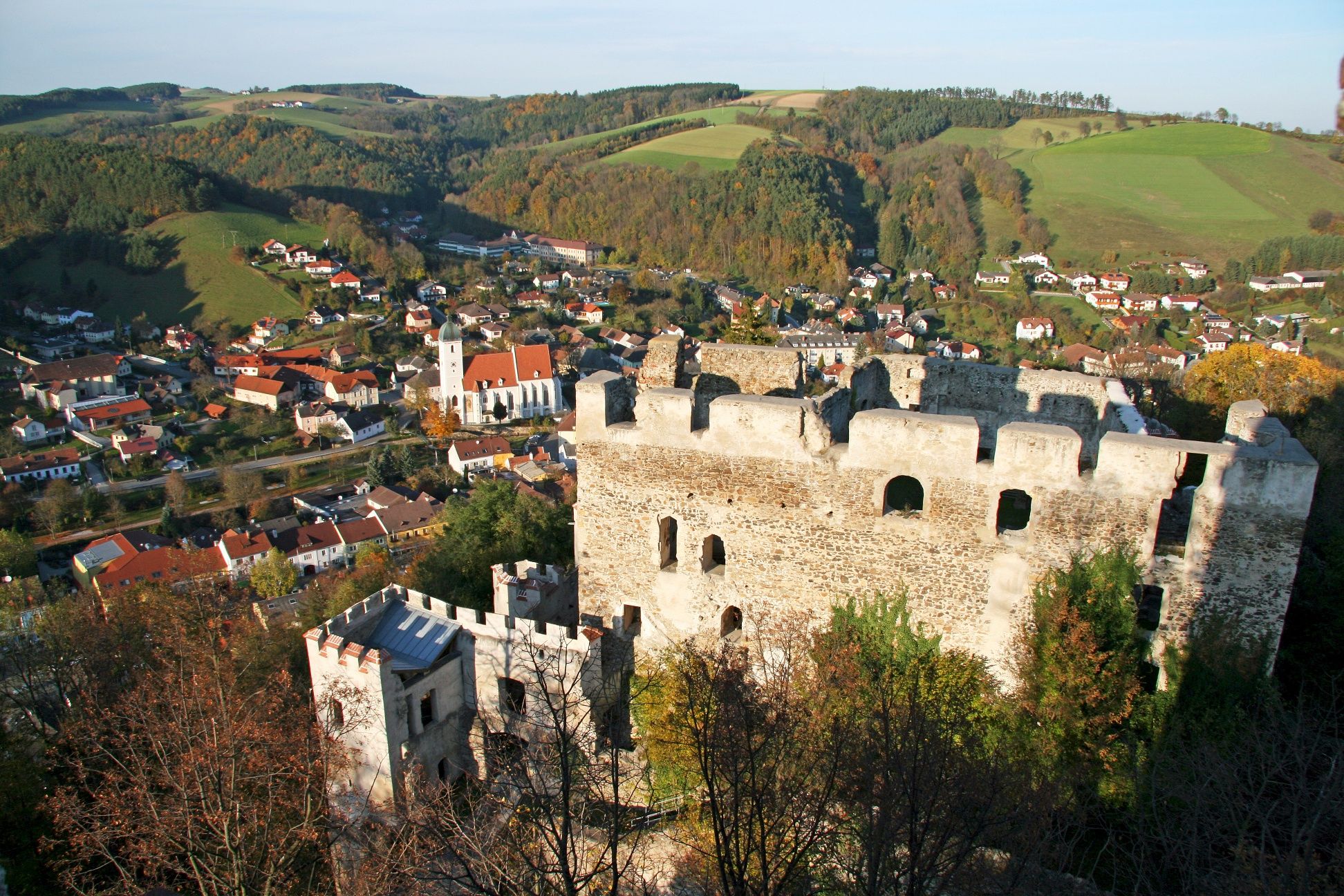 Od kostola sa okolo skupiny domov "Im Dorner" dostanete na cestu do Bad Schönau, po ktorej pokračujete do Krumbachu. Tu prejdete ku kostolu a pokračujete po vyznačenej ceste. Čoskoro prekročíte diaľnicu a dostanete sa do ďalšej obce. Značená trasa vedie mimo ciest krásnou krajinou Wechsellandu. Farský kostol Kirchberg už z diaľky víta pútnikov. Zvláštnym tipom v Kirchbergu je kalvária. Z dediny sa k nej dostanete pešo približne za pol hodiny. Bola postavená po skončení morovej epidémie v rokoch 1713/14. V kaplnkách sú realisticky, takmer v životnej veľkosti zobrazené tajomstvá Bolestného ruženca.