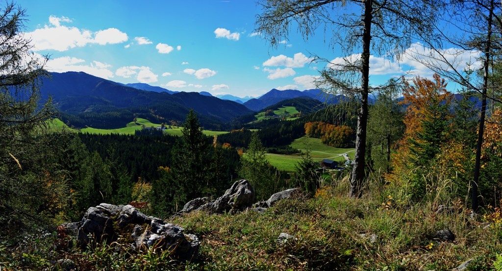 Cez vyhliadku Steinkogel pokračujte cez Ablasser Mauern na Sonnstein. Nádherný výhľad na Hochreit a pohorie Göstling s lavičkami na oddych.