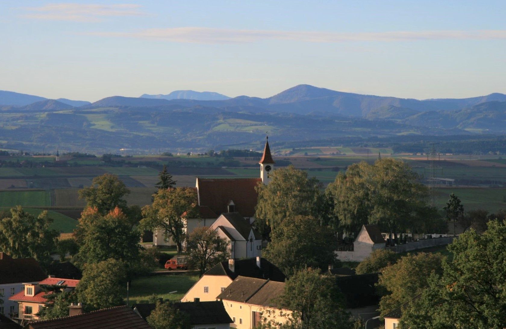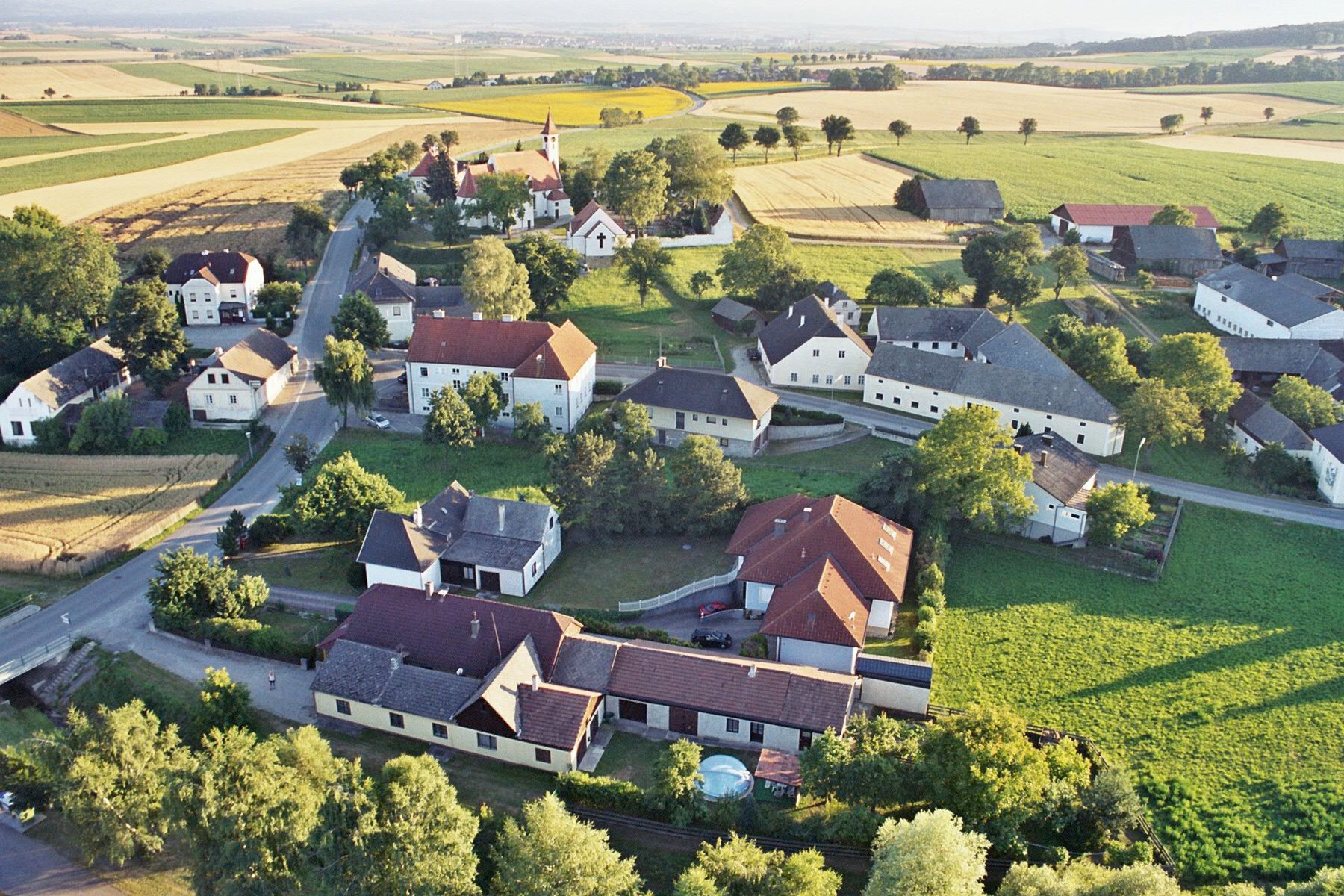 Cyklotúra historicky a krajinársky atraktívnou obcou Neidling na okraji lesa Dunkelsteinerwald.