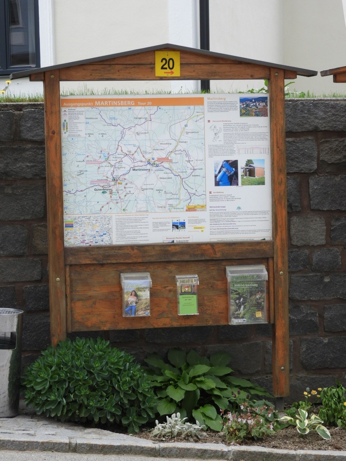 Turistický chodník č. 20 Martinsberg - Oed - Oedská hvezdáreň - obora - Edlesberg - Edlesberger See - socha sedadla - Oedská hvezdáreň - rybník Reitzendorfer - Kleinmitterndorf - Martinsberg