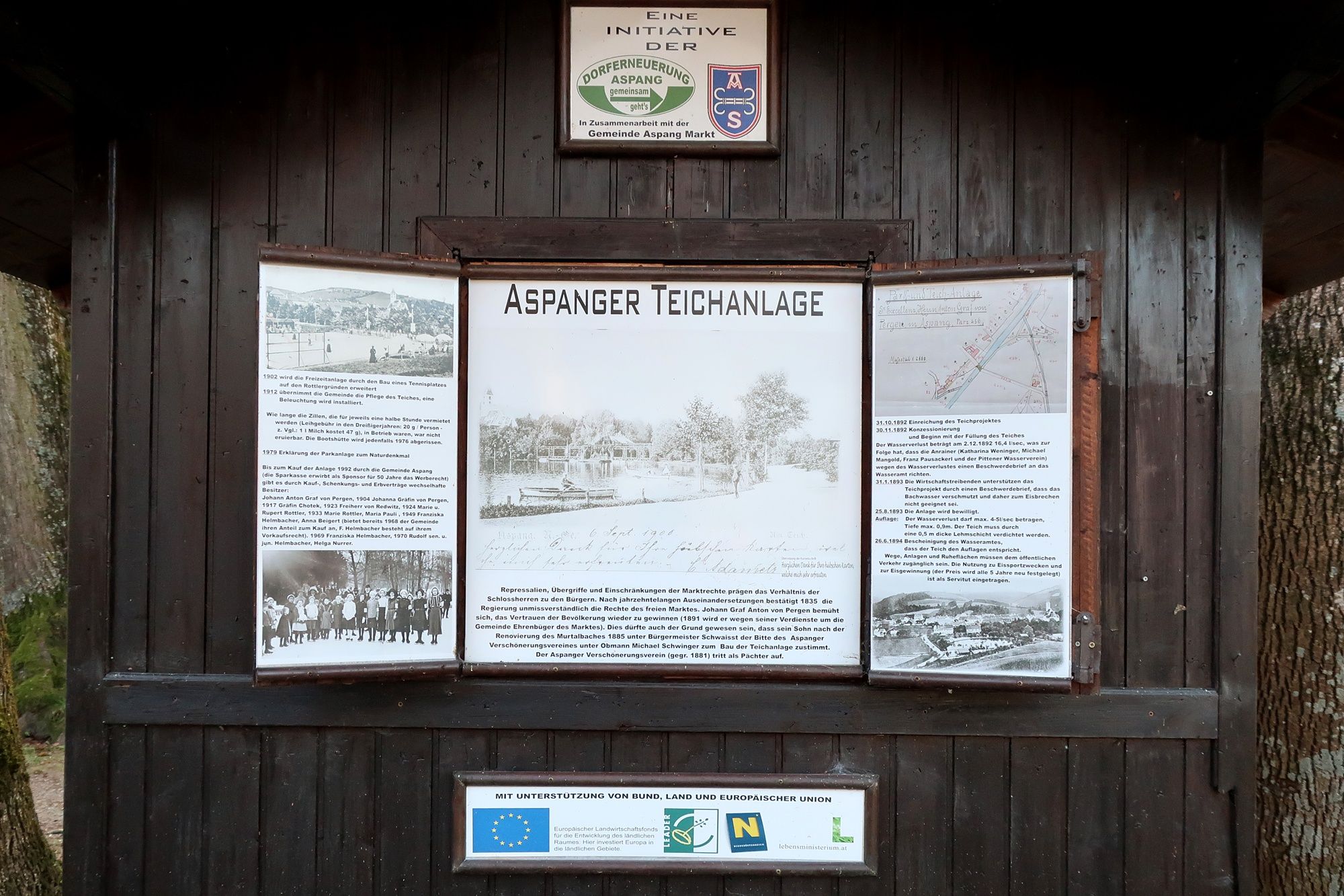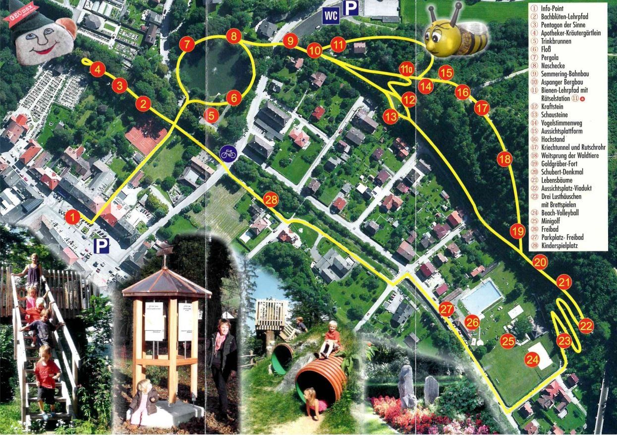 Panoramatická prechádzka s 28 zážitkovými stanovišťami z centra Aspangu cez historické parky a po Sterzlweg k vonkajšiemu bazénu a späť.