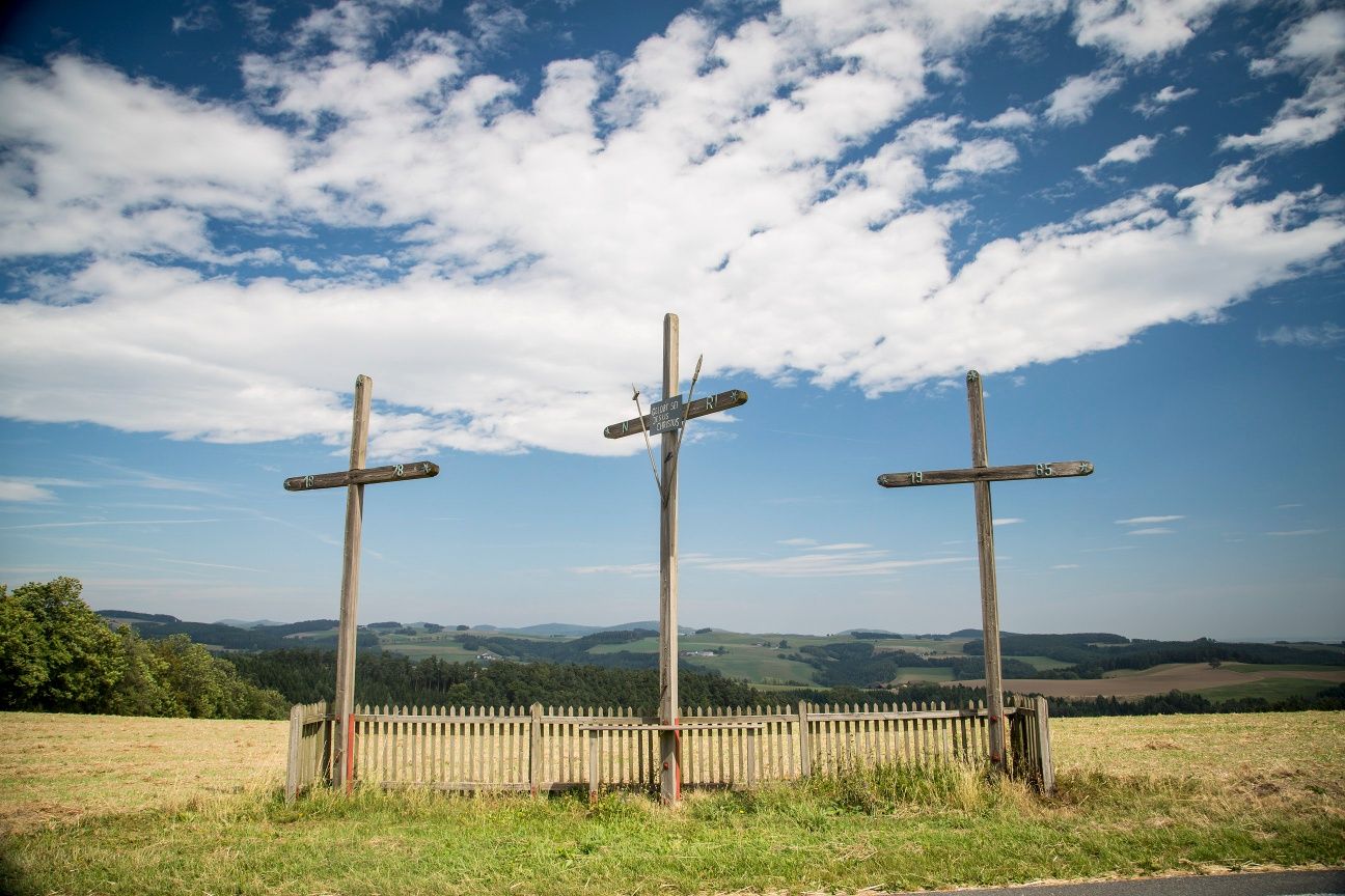 Turistická trasa začiatok Kirchschlag, pamätník cisára Františka Jozefa