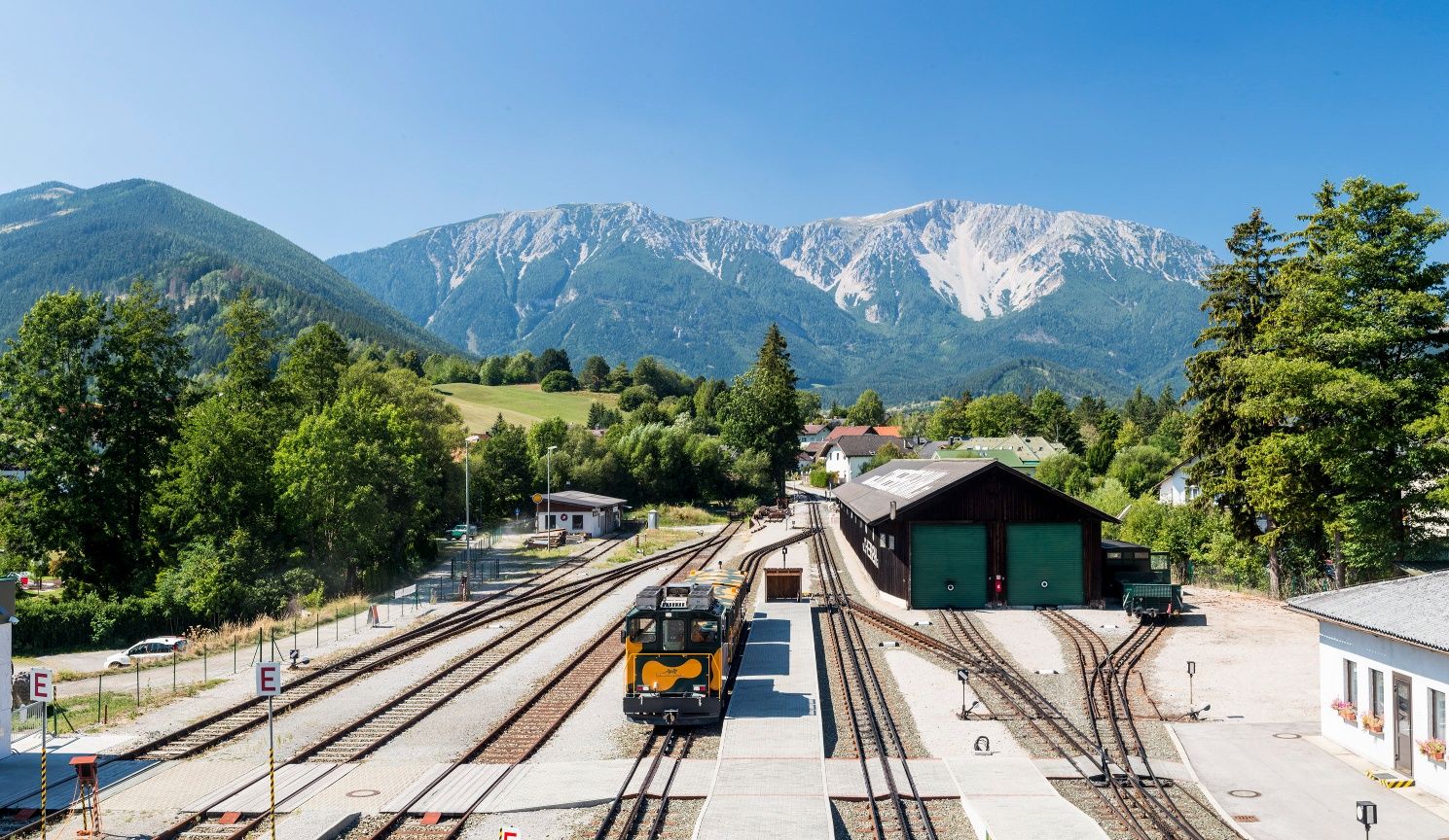 Turistická trasa začiatok Parkovisko zubačky Schneebergbahn v obci Puchberg am Schneeberg