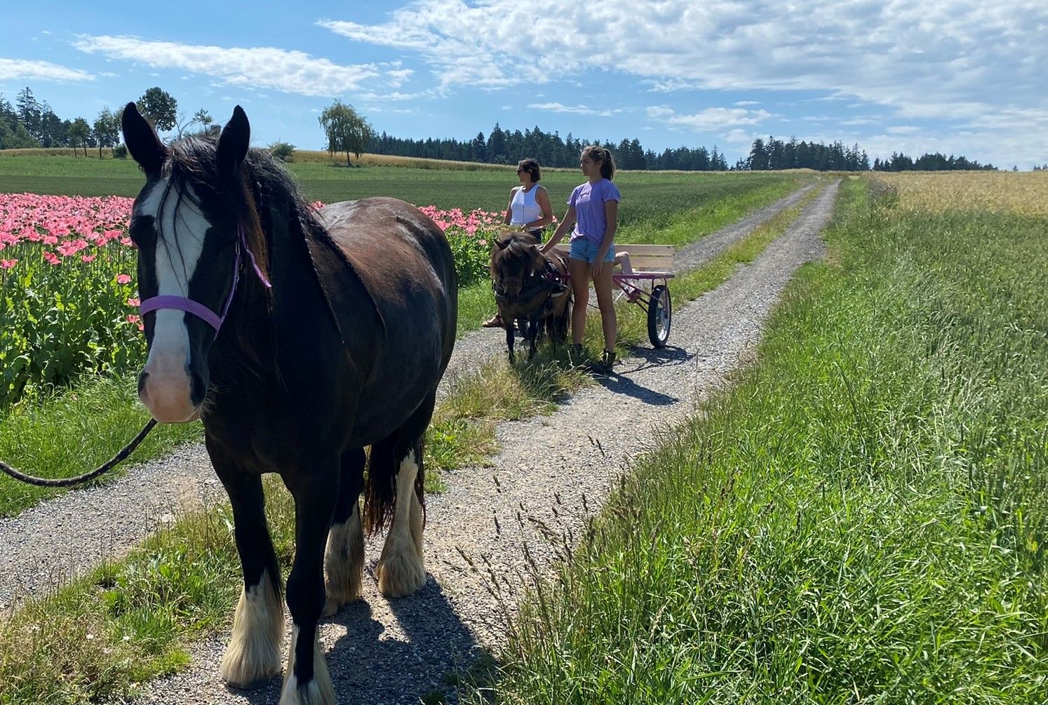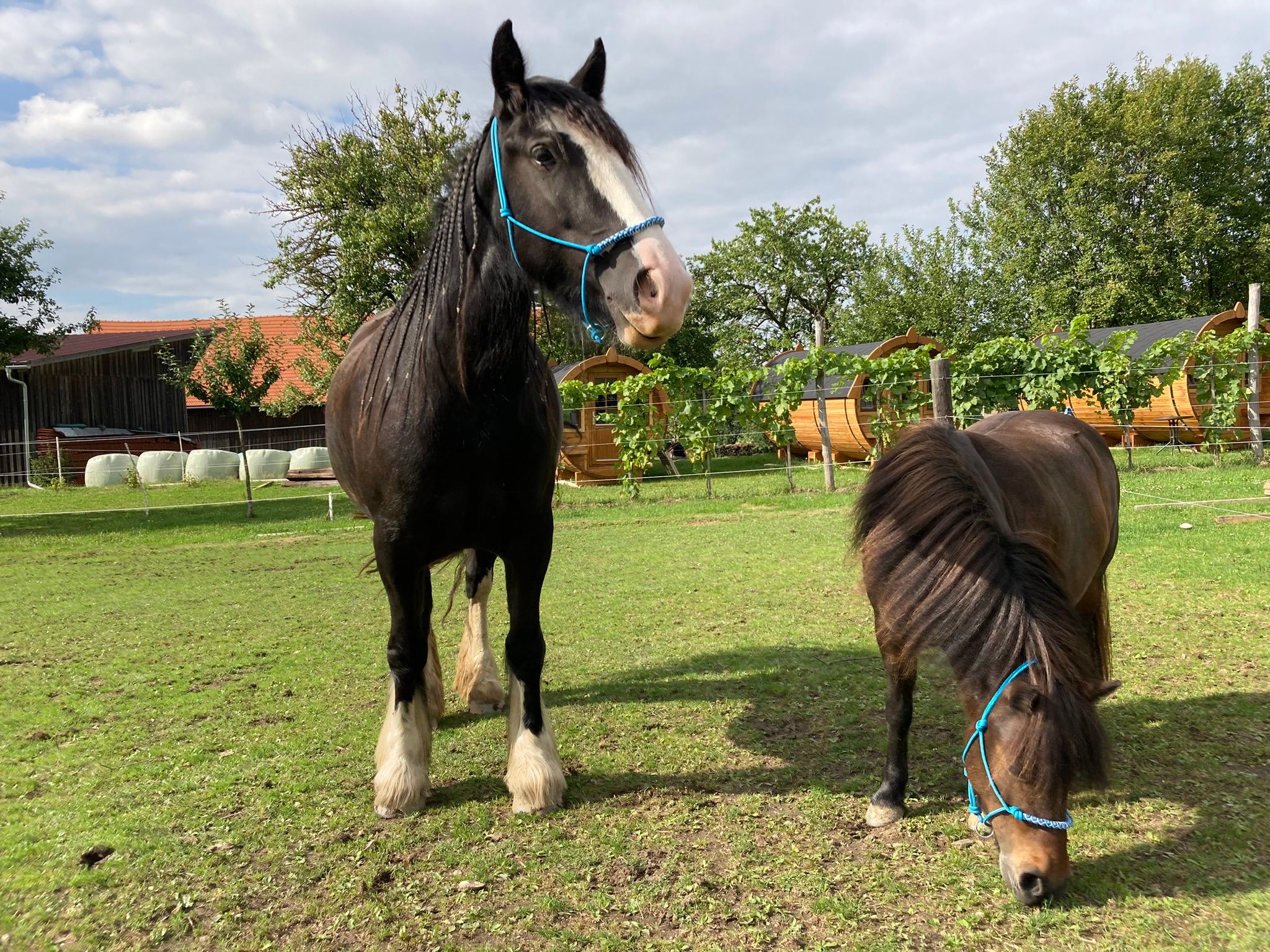 Po absolvovaní školenia pre kvalifikovaných poľnohospodárskych pracovníkov v súčasnosti ekologicky obhospodarujeme 1/3 z našich 15 hektárov pôdy na chov koní, od 23. júna ponúkame naše špeciálne spacie sudy na dovolenku na farme a v súčasnosti absolvujeme školenia Greencare "Podpora zdravia na farme" a "Intervencia s pomocou zvierat" a čoskoro budeme môcť rozšíriť našu ponuku pre našich hostí.
