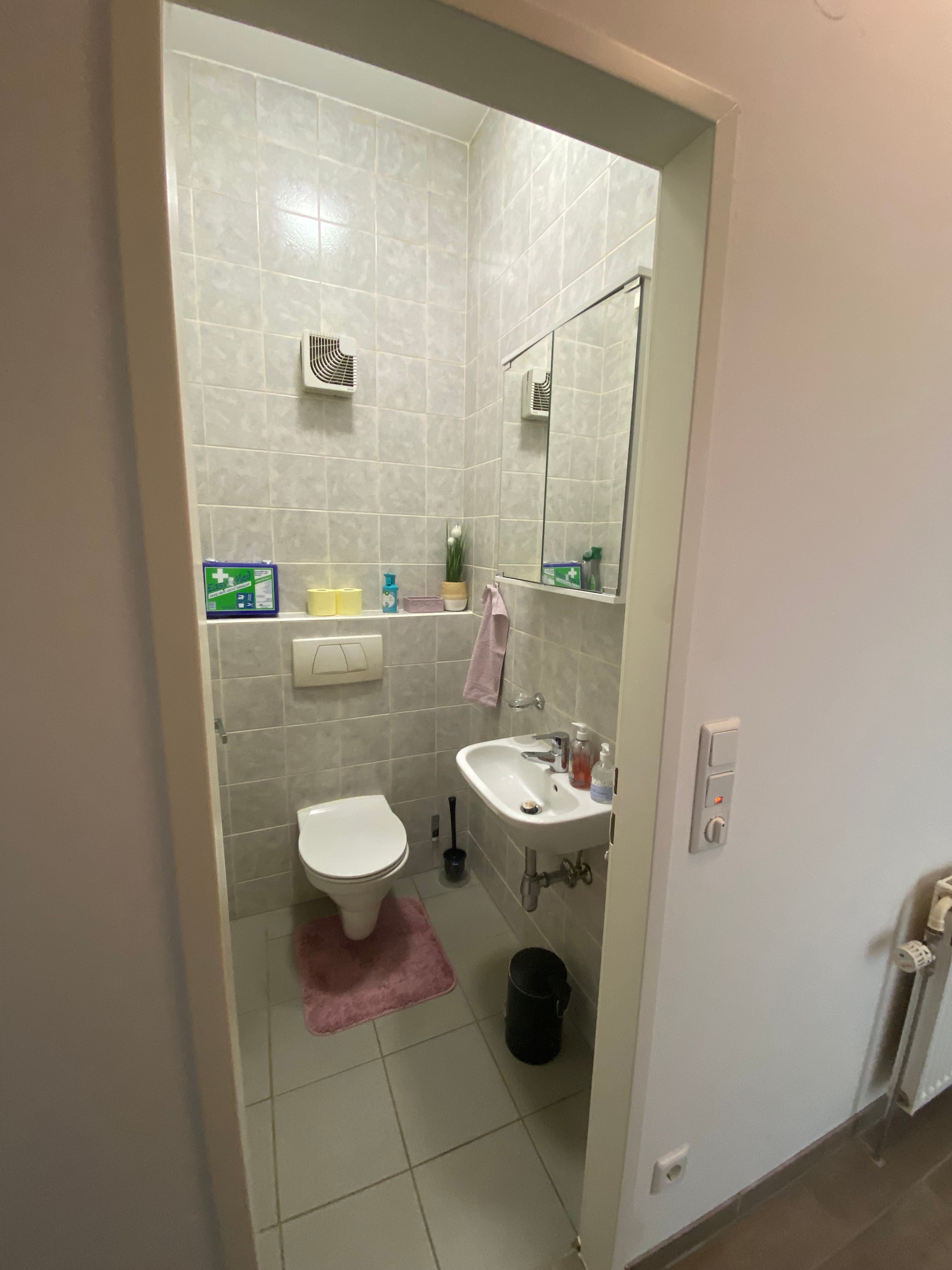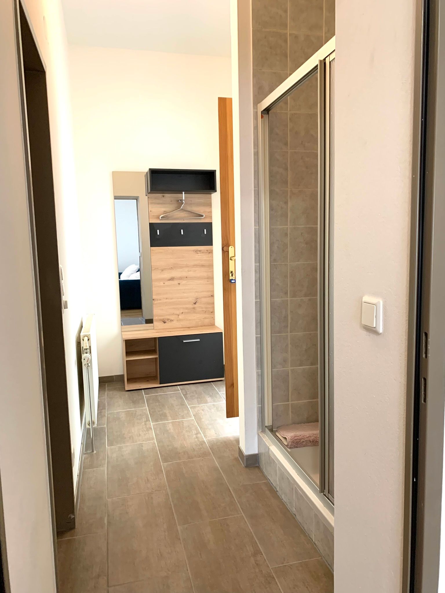 Kúpeľňa so sprchovacím kútom (uteráky), práčka, sušič vlasov