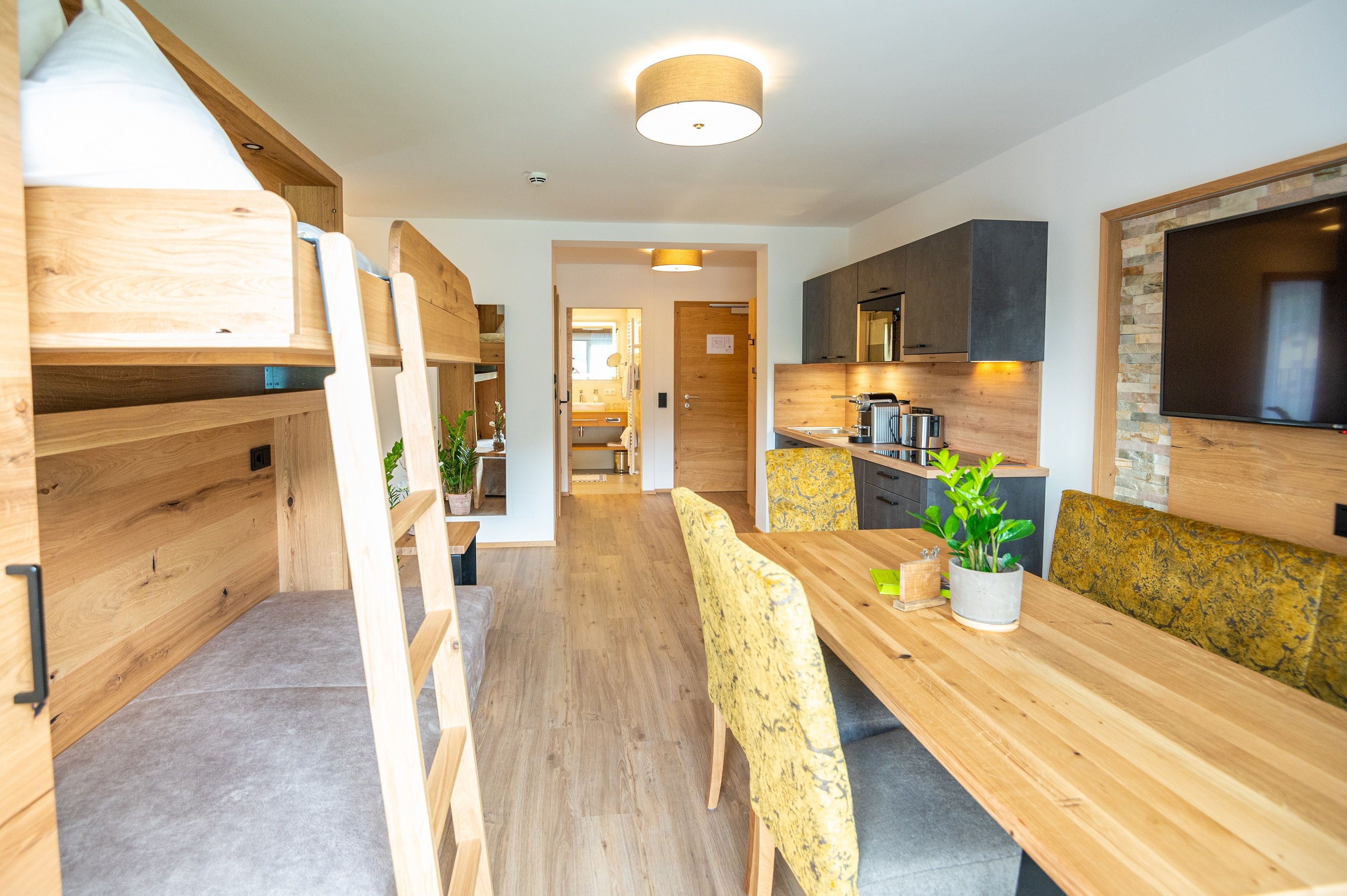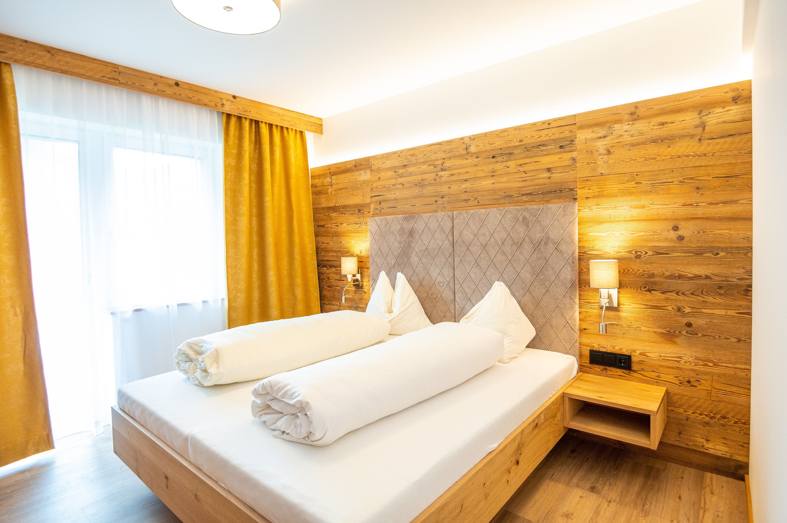 Novo zrekonštruované apartmány (2-6 osôb) a dvojlôžkové izby s balkónom alebo priamym vstupom do záhrady.