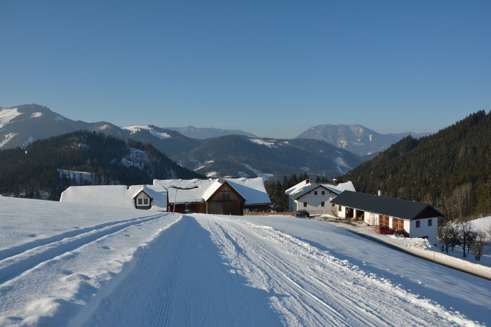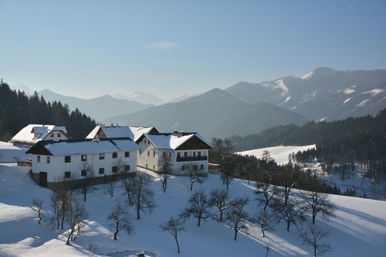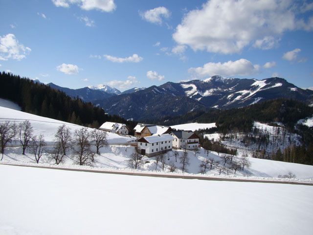 Horská farma sa nachádza 3,5 km od Göstlingu na krásnej náhornej plošine Hochreit v nadmorskej výške 800 metrov. Veľmi pokojná a slnečná lokalita s nádherným výhľadom na Göstlingské Alpy.