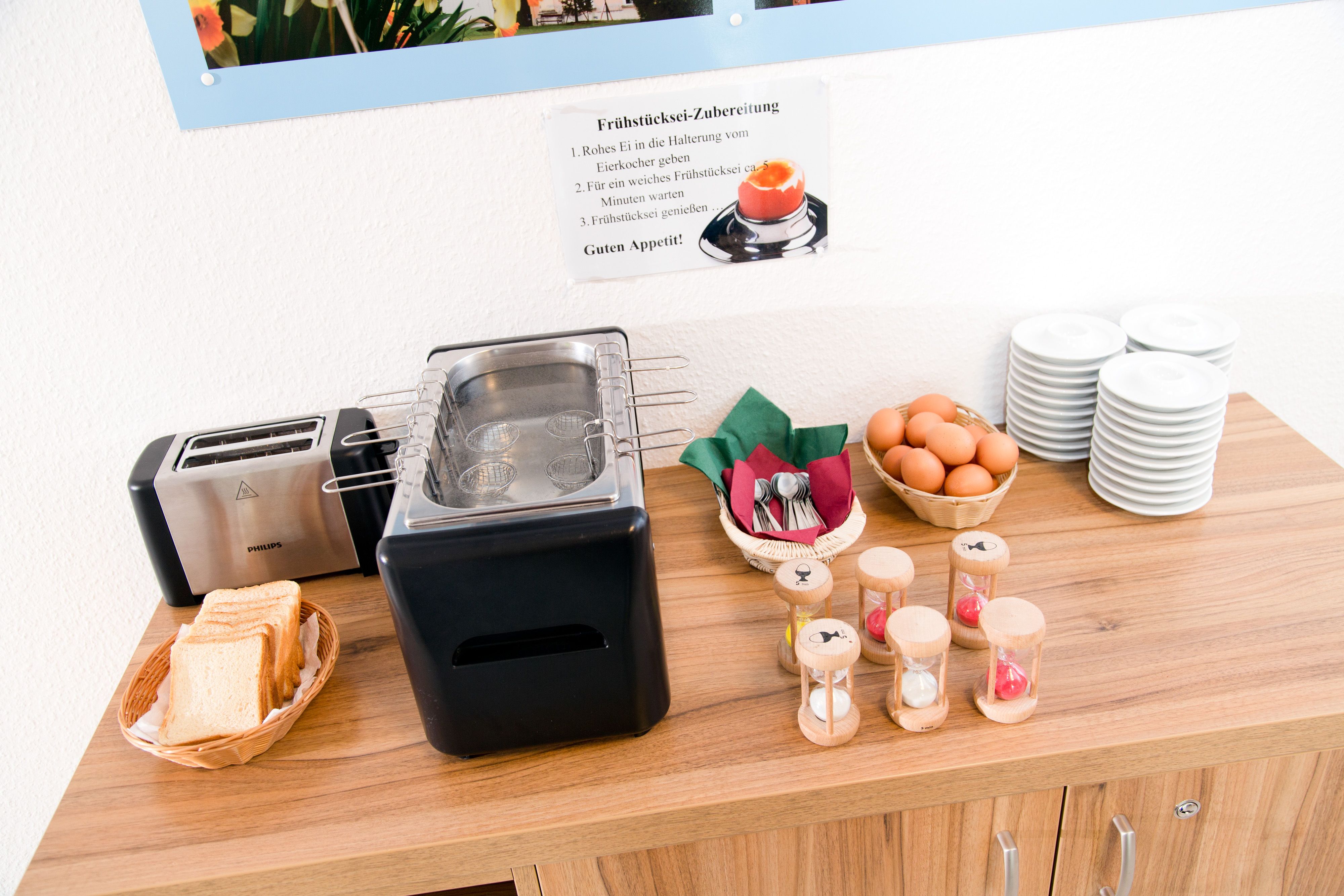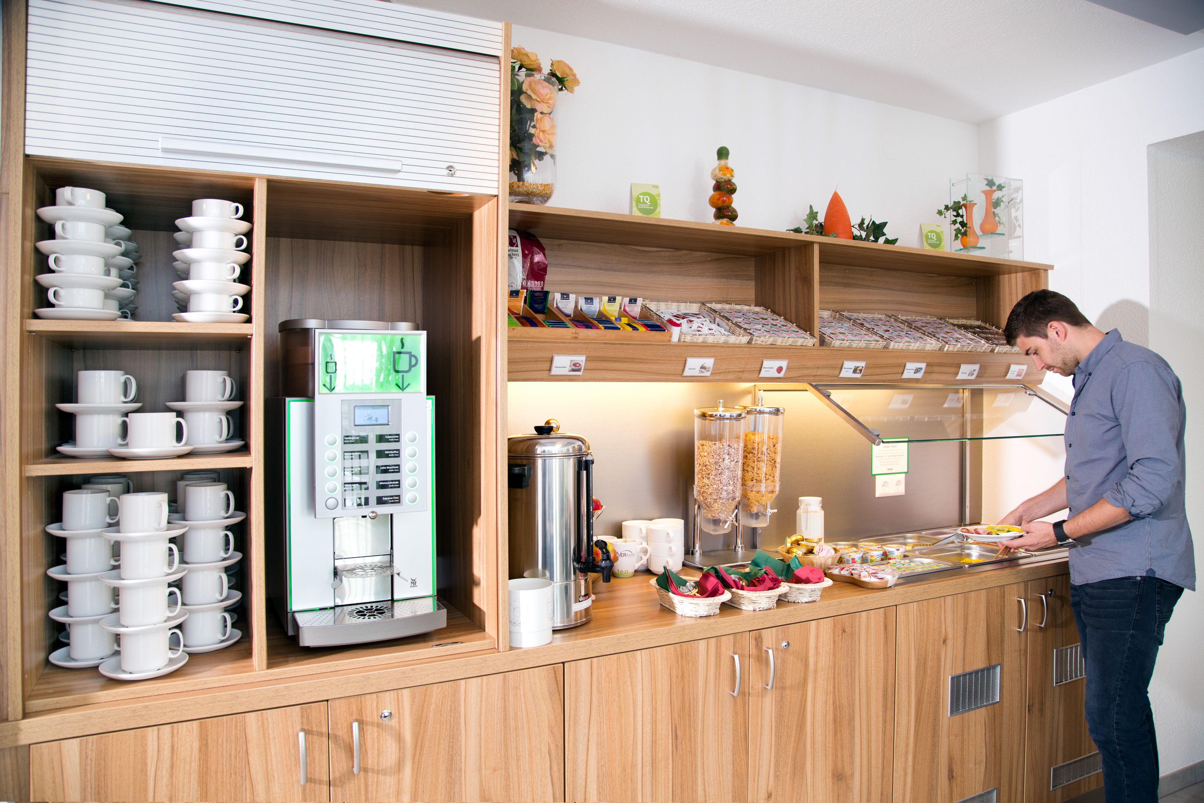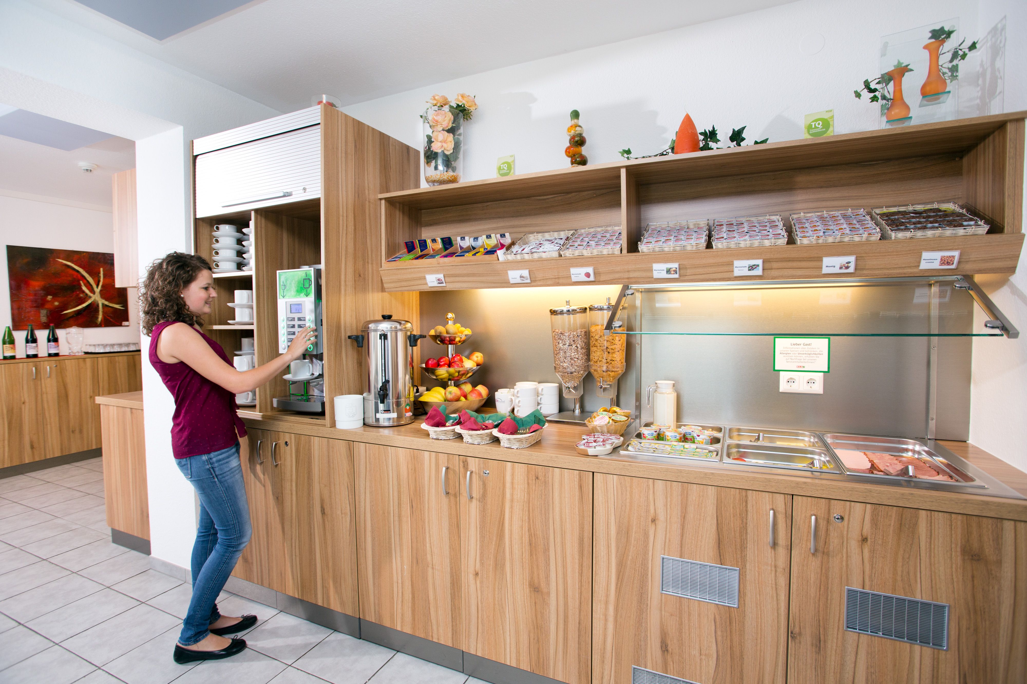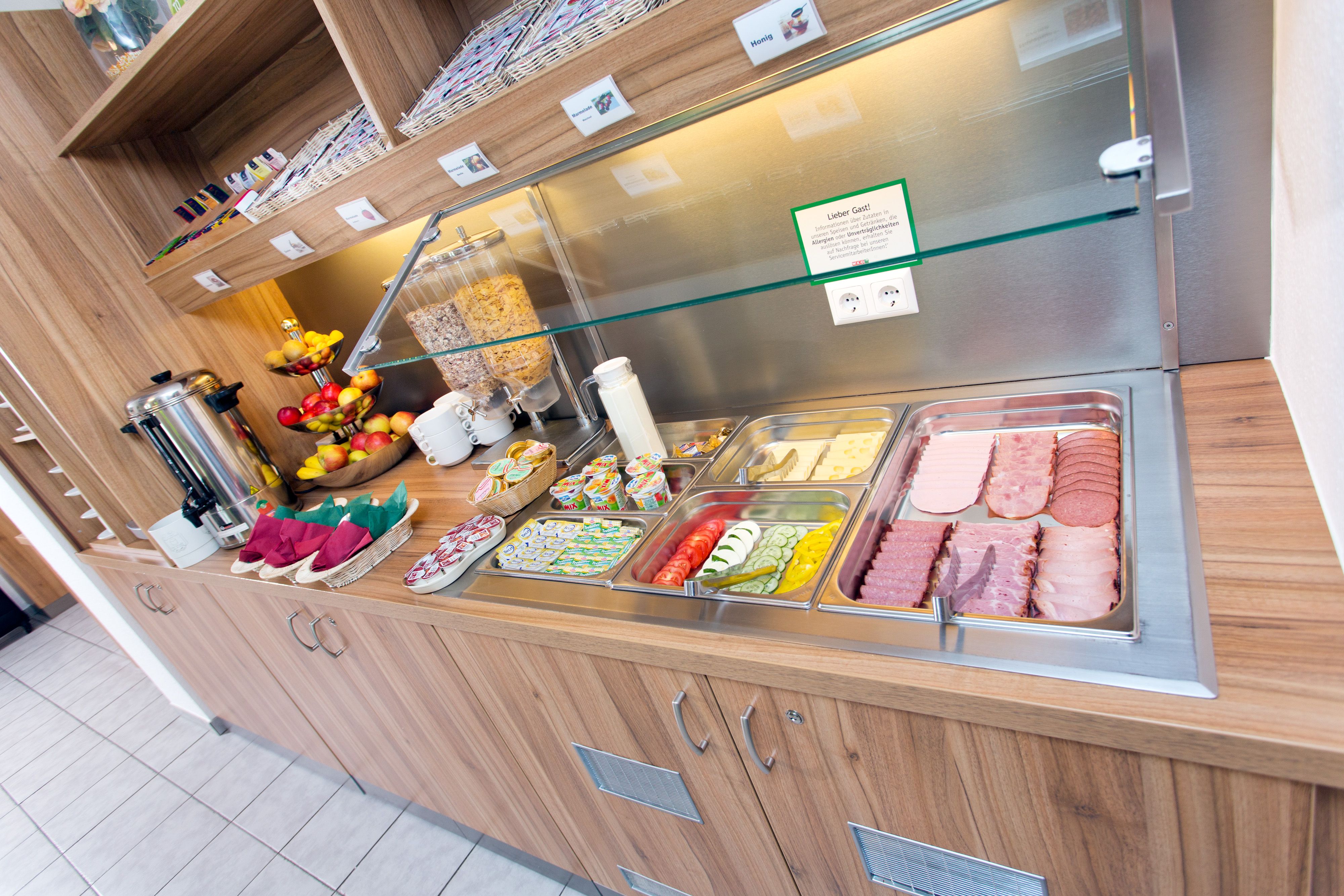 Raňajky formou bufetu s mnohými produktmi z regiónu (bio šťavy, vajcia...) sú k dispozícii v pracovných dňoch od 5.30 hod.