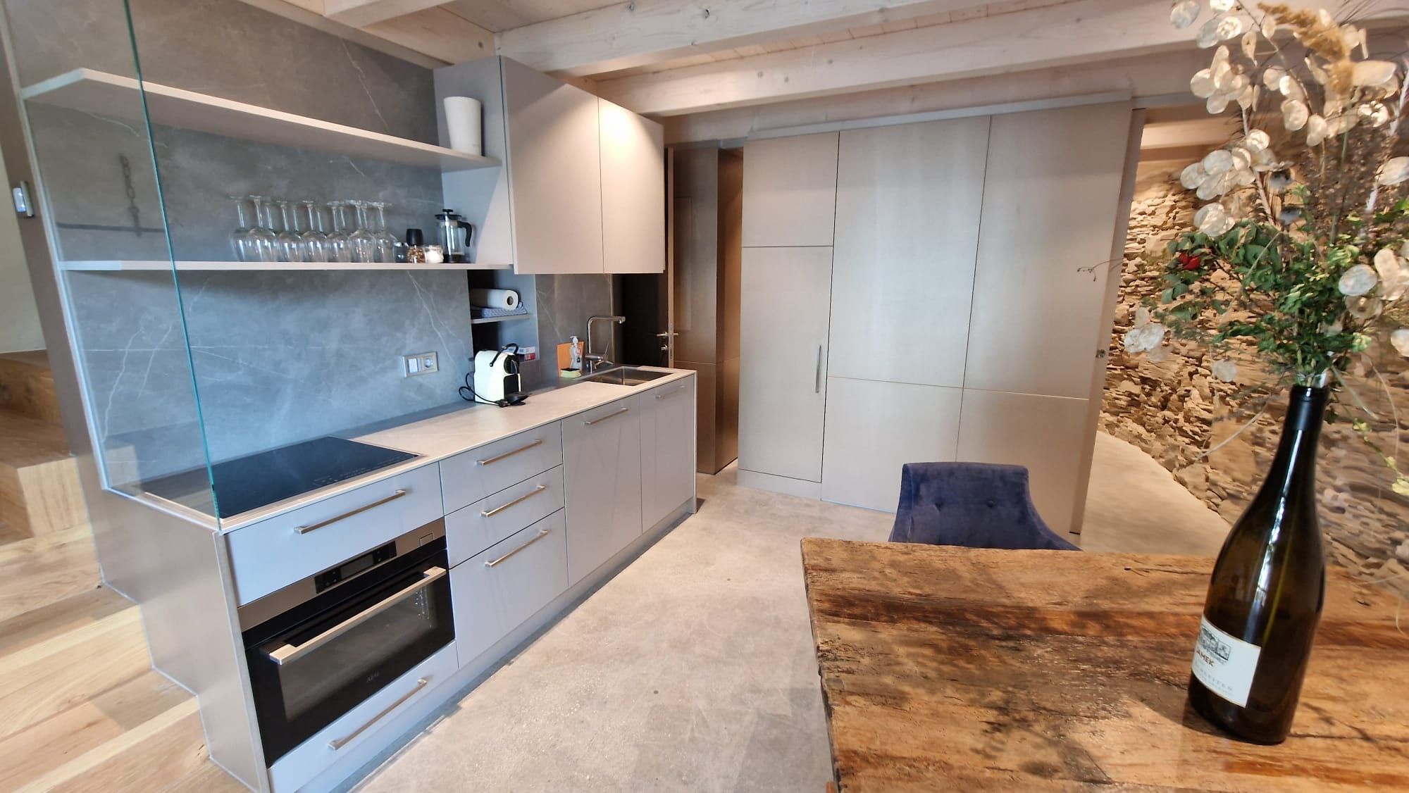 Stará opevnená veža má 5 podlaží, ktoré sú rozdelené medzi pivnicu a prvé podzemné podlažie ako byt "Gewölbe" a prízemie, prvé poschodie a podkrovie ako byt "Warte" a ponúkajú priestor pre 4 alebo 6 osôb a sú individuálne zariadené pôvodnými kusmi nábytku.