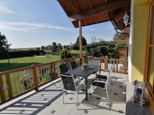 Priestranná, krytá terasa vás pozýva na oddych na čerstvom vzduchu.