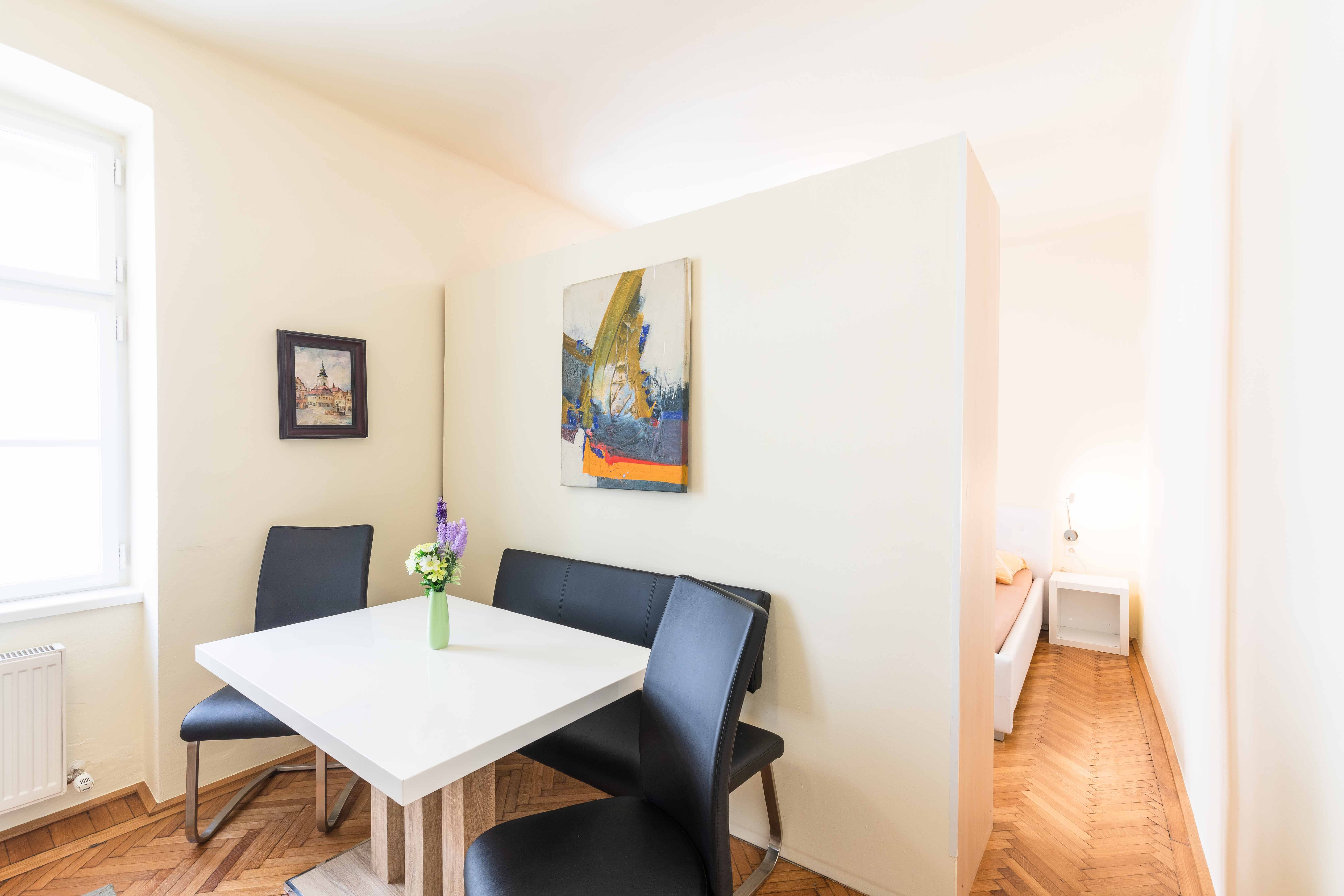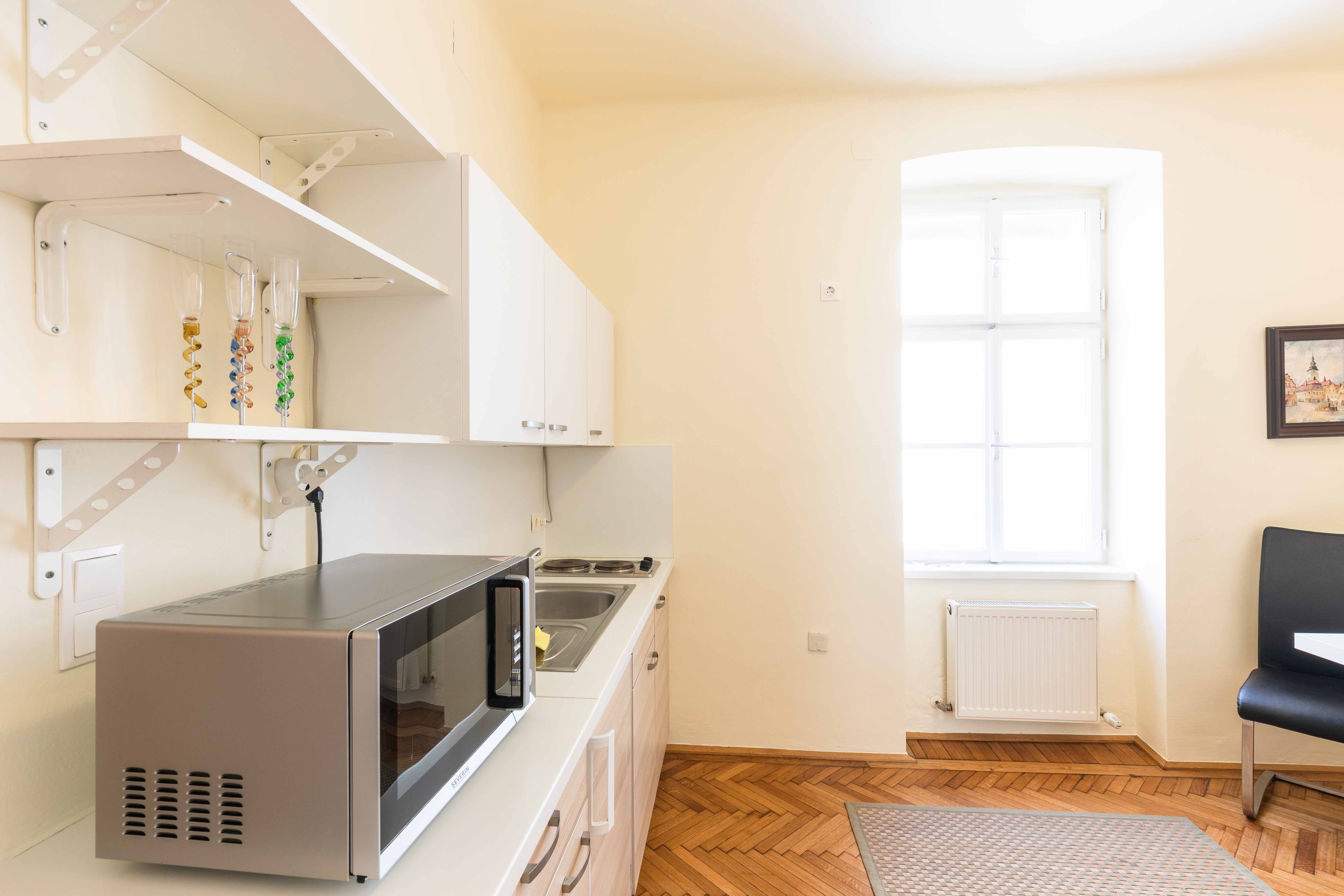 Byt s jednou spálňou a kuchyňou s obývacou izbou je dokonale vybavený a priestranný pre 2 osoby. Byt sa nachádza v starostlivo zrekonštruovanom starom meštianskom dome, a preto vyžaruje zvláštne čaro.