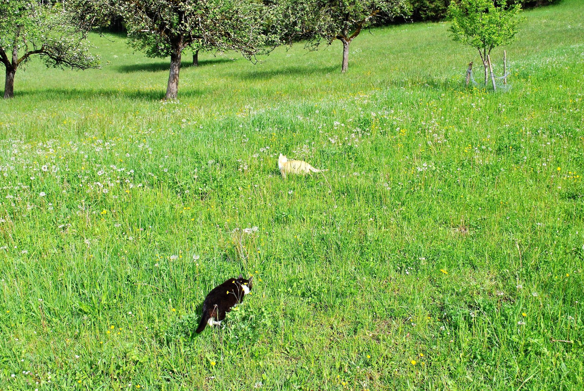 Okrem sliepok a husí máme aj králika a mačky, ktoré sa veľmi rady nechajú pohladkať.