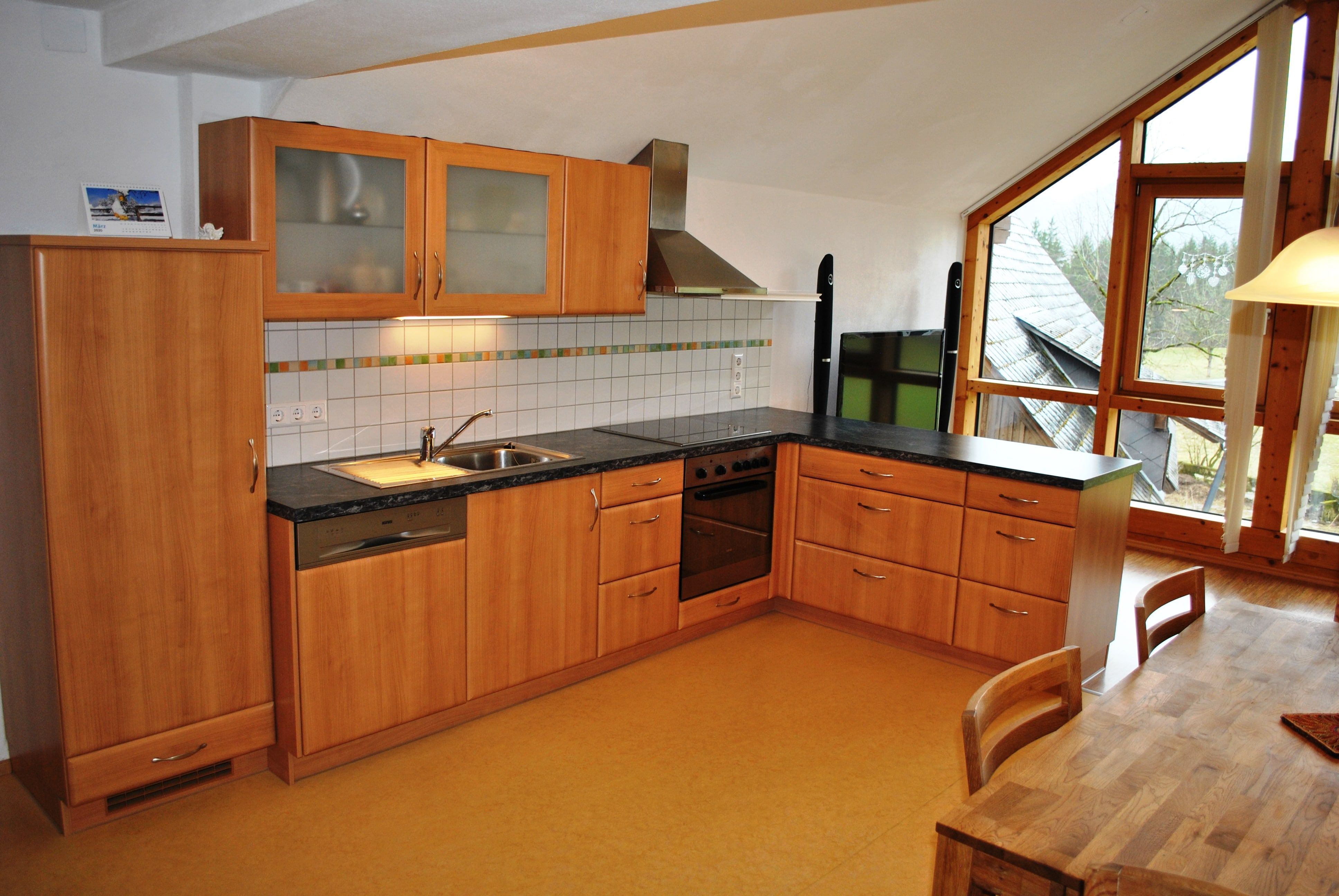 Kuchyňa je dobre vybavená chladničkou, varnou doskou, rúrou, rýchlovarnou kanvicou, kávovarom a umývačkou riadu.