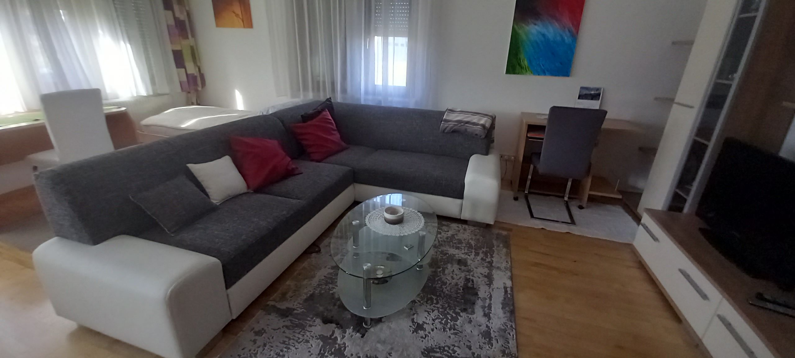 Útulný prázdninový byt s rozlohou cca 65 m² v krásnej, pokojnej lokalite. V prázdninovom byte pre max. 3 osoby sa nachádza dobre vybavená kuchyňa s užitočným riadom a pekným jedálenským kútom, priestranná obývacia izba, spálňa pre 2 osoby (v obývacej izbe je možná 1 prístelka), kúpeľňa s vaňou (vrátane uterákov a sušiča vlasov..) a samostatné WC. V bezprostrednej blízkosti sa nachádza supermarket, domáce zvieratá nie sú povolené.