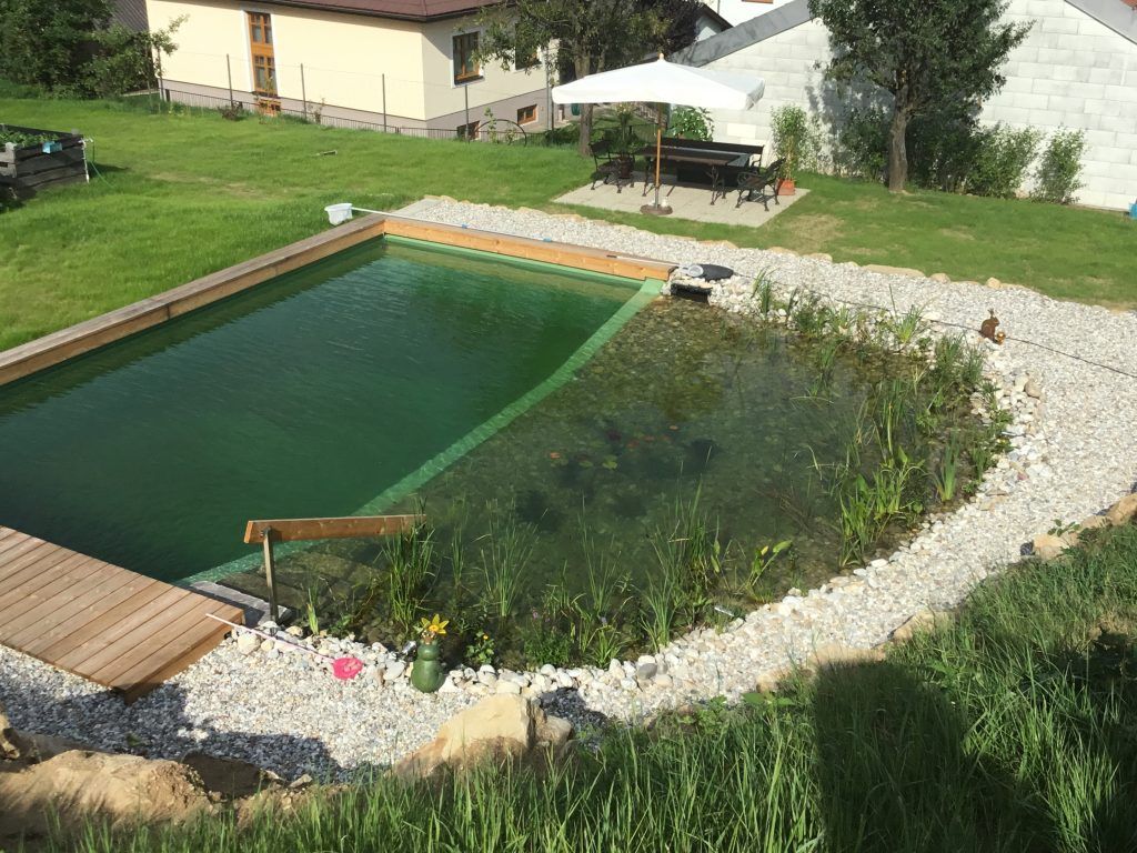 veľkú, dobre udržiavanú záhradu s jazierkom na kúpanie, útulným posedením a grilom
