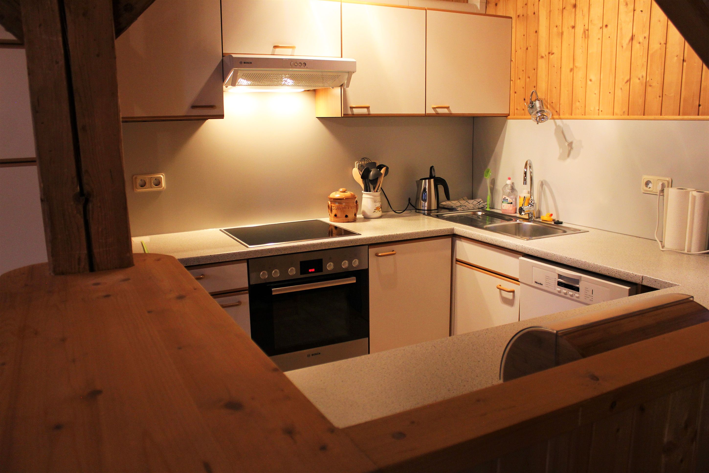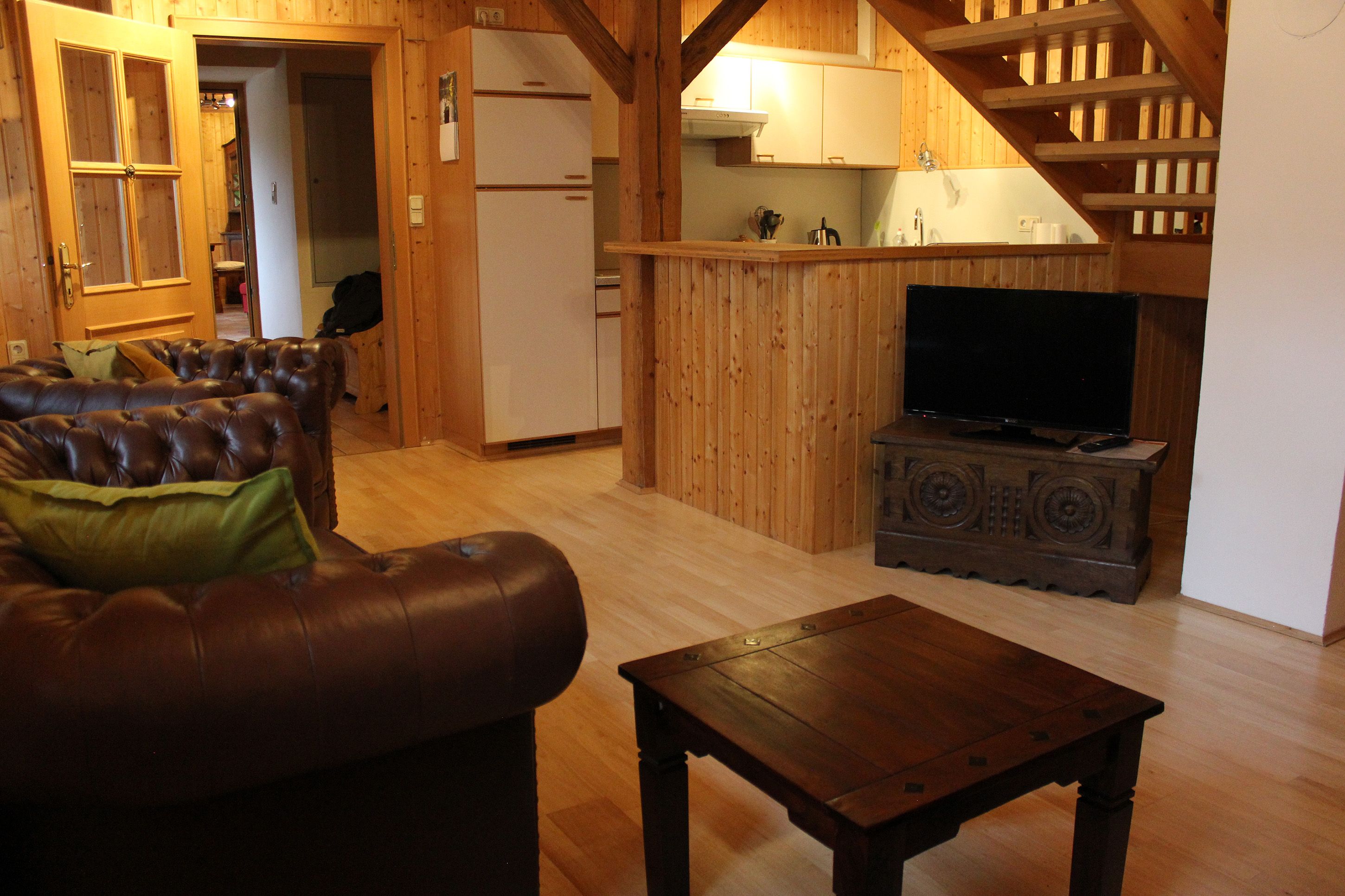 Priestranný prázdninový byt je s láskou zariadený množstvom dreva a ponúka dostatok priestoru, aby ste sa v ňom cítili ako doma! Veľké okná ponúkajú výhľad do záhrady - a možno večer zablúdi z neďalekého lesa srnka a dá si na čerešni desiatu.