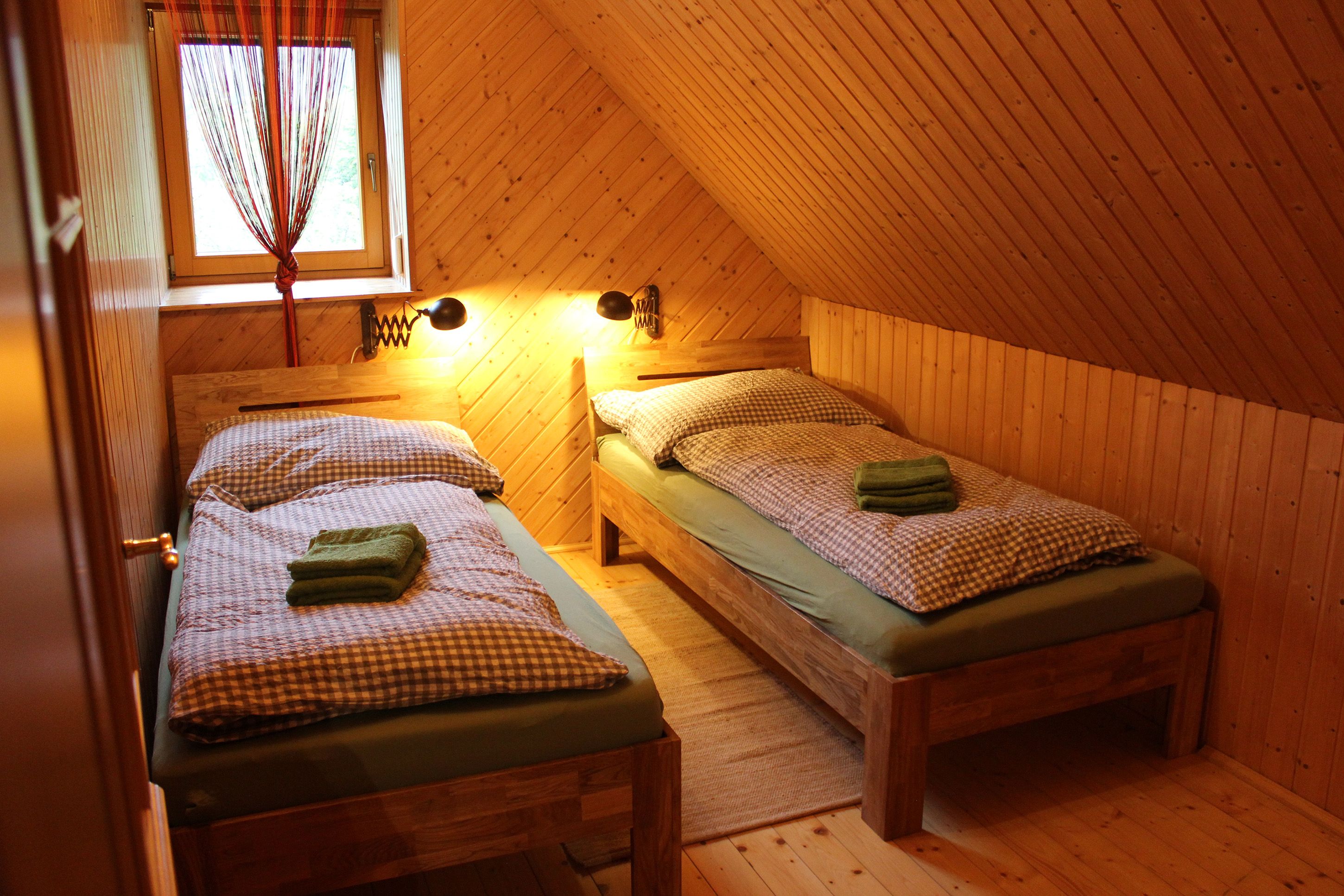 Byt sa nachádza na úrovni terénu vo dvore a bezstupňový prístup je ideálny pre malé deti a osoby s pohybovým postihnutím. Ako sa na lesnícku chatu sluší, hneď za ňou začína les s množstvom turistických a voľnočasových možností. Priestranná záhrada na nádvorí a na okraji lesa poskytuje malým hosťom veľa priestoru na zábavu, hry a dobrodružstvo. Horúce letné dni môžete stráviť v našom novom prírodnom bazéne - ochladenie je v cene.