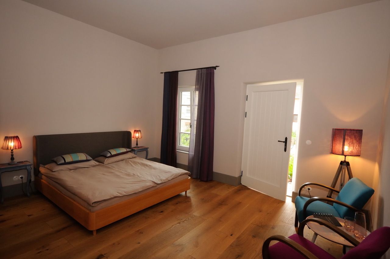Bývalá farma a vinohradnícka usadlosť má átriové vnútorné nádvorie obklopené starými hospodárskymi budovami. S láskou upravená záhrada vás pozýva na zotrvanie a oddych. V záhrade za domom rastú ovocné stromy a bio zelenina, ktorá sa používa do domácich džemov podávaných na raňajky.