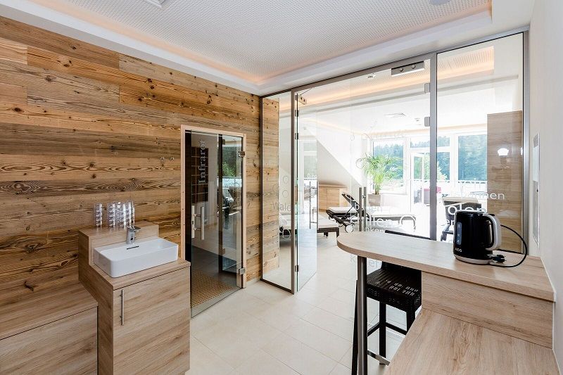 The hotel has 28 rooms in various categories. In the morning we welcome our guests with a rich breakfast buffet. Our wellness area has a bio pine sauna, infrared cabin, wellness shower with Kneipp treatments and a relaxation quiet zone with an impressive panoramic view of the Gemeindealpe. In the evening, guests can end the day with a tasty meal and delicious drinks in the nearby á la carte panorama restaurant & bar "Ko'eck".