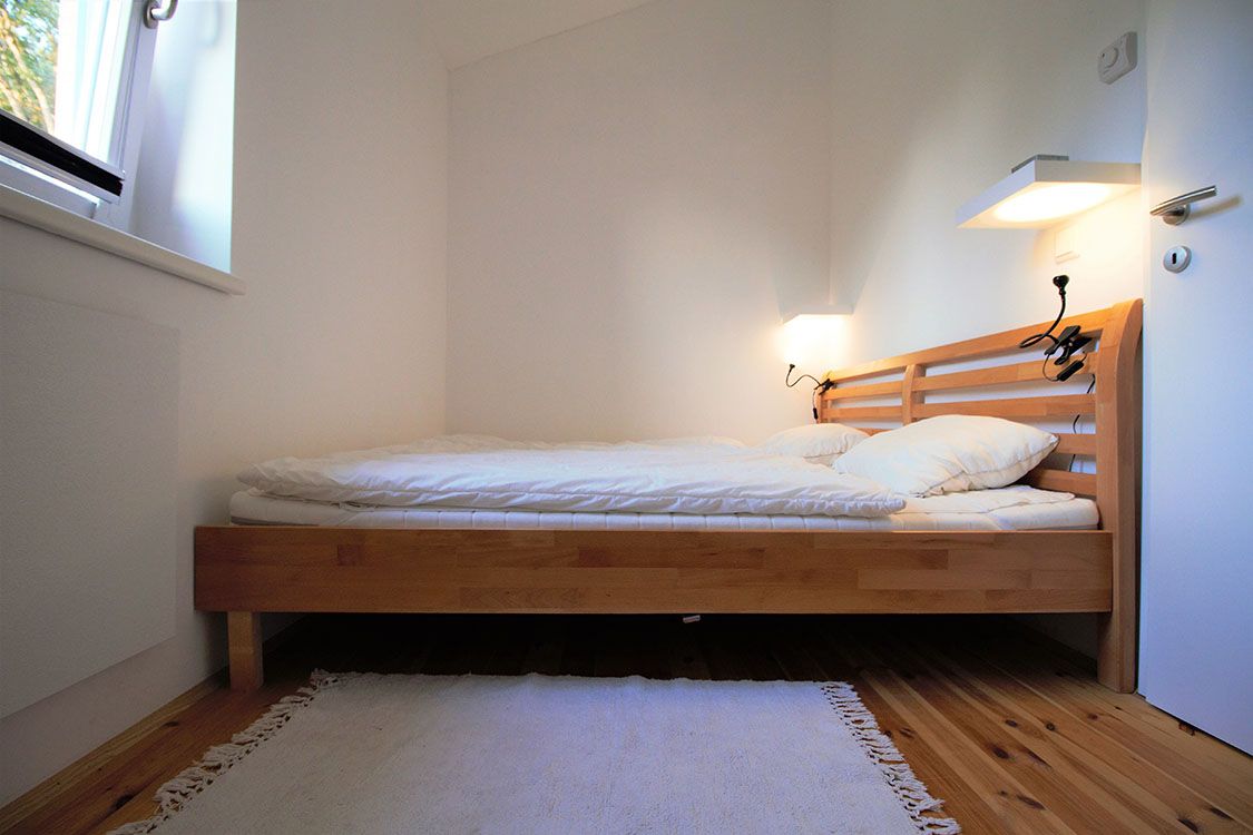 2 lôžka, z toho manželská posteľ 2x2 m v spálni, manželský matrac na galérii v obývacej izbe 1,60x2 m, rozkladacia pohovka v obývacej časti sa dá rozložiť.