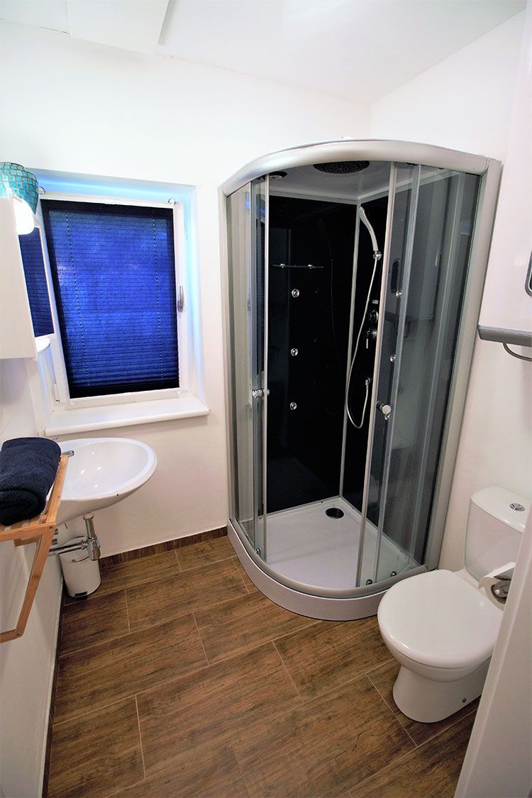 1 kúpeľňa so sprchovacím kútom, WC, umývadlom