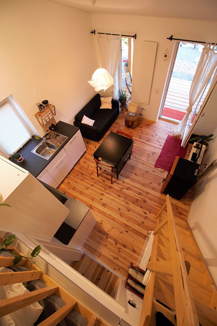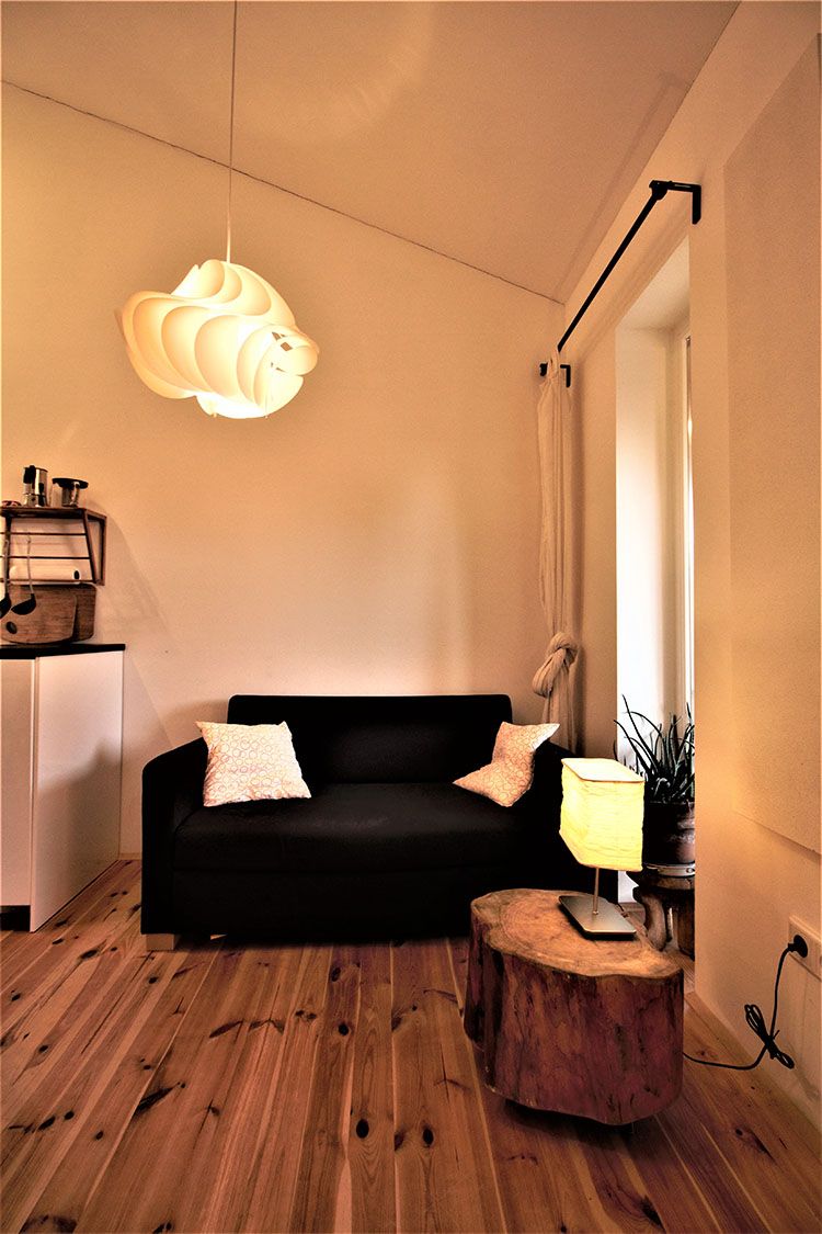 1 veľká obývacia izba s kuchyňou, pohovkou, TV a galériou