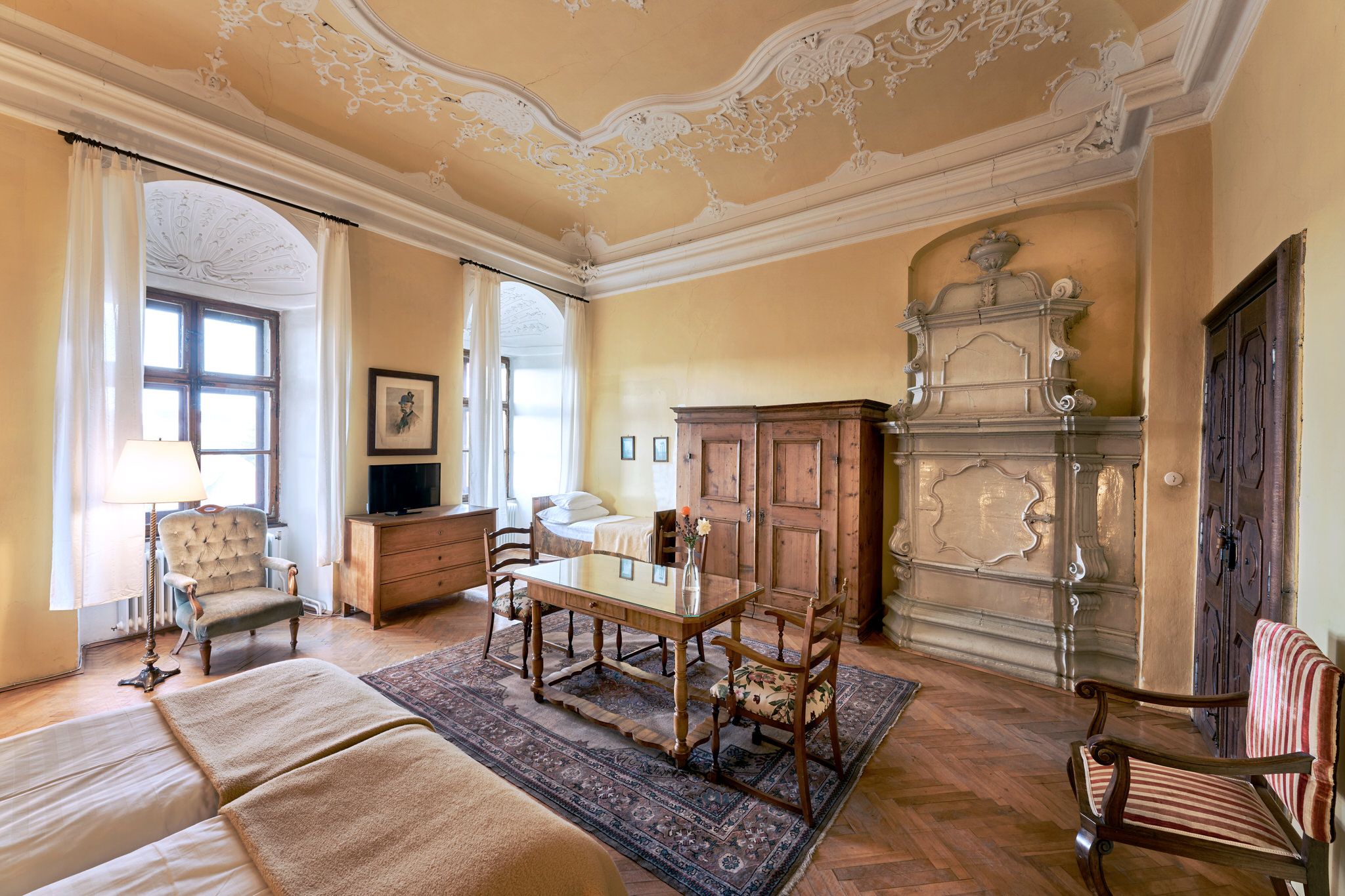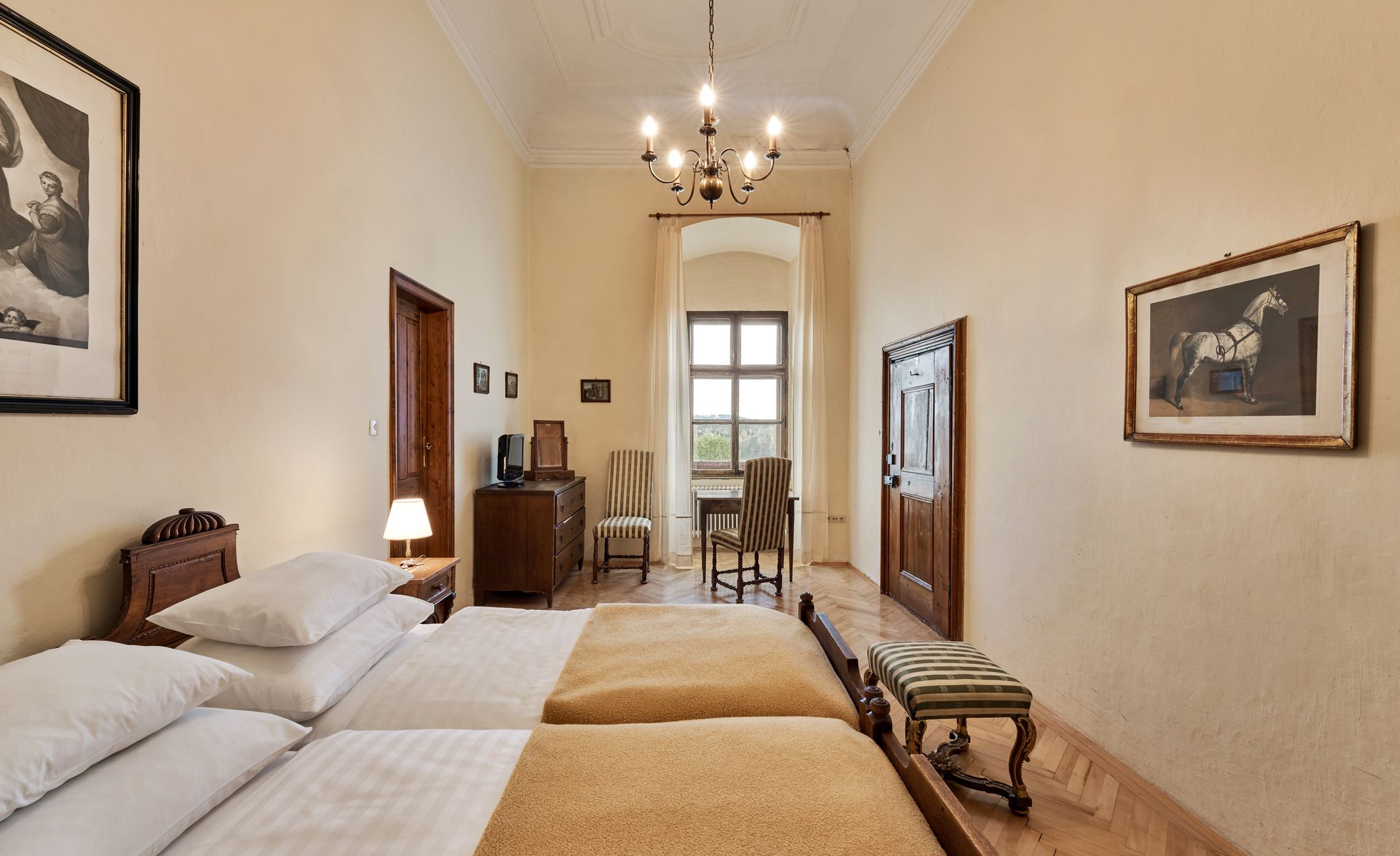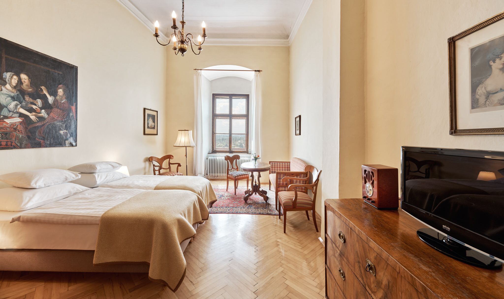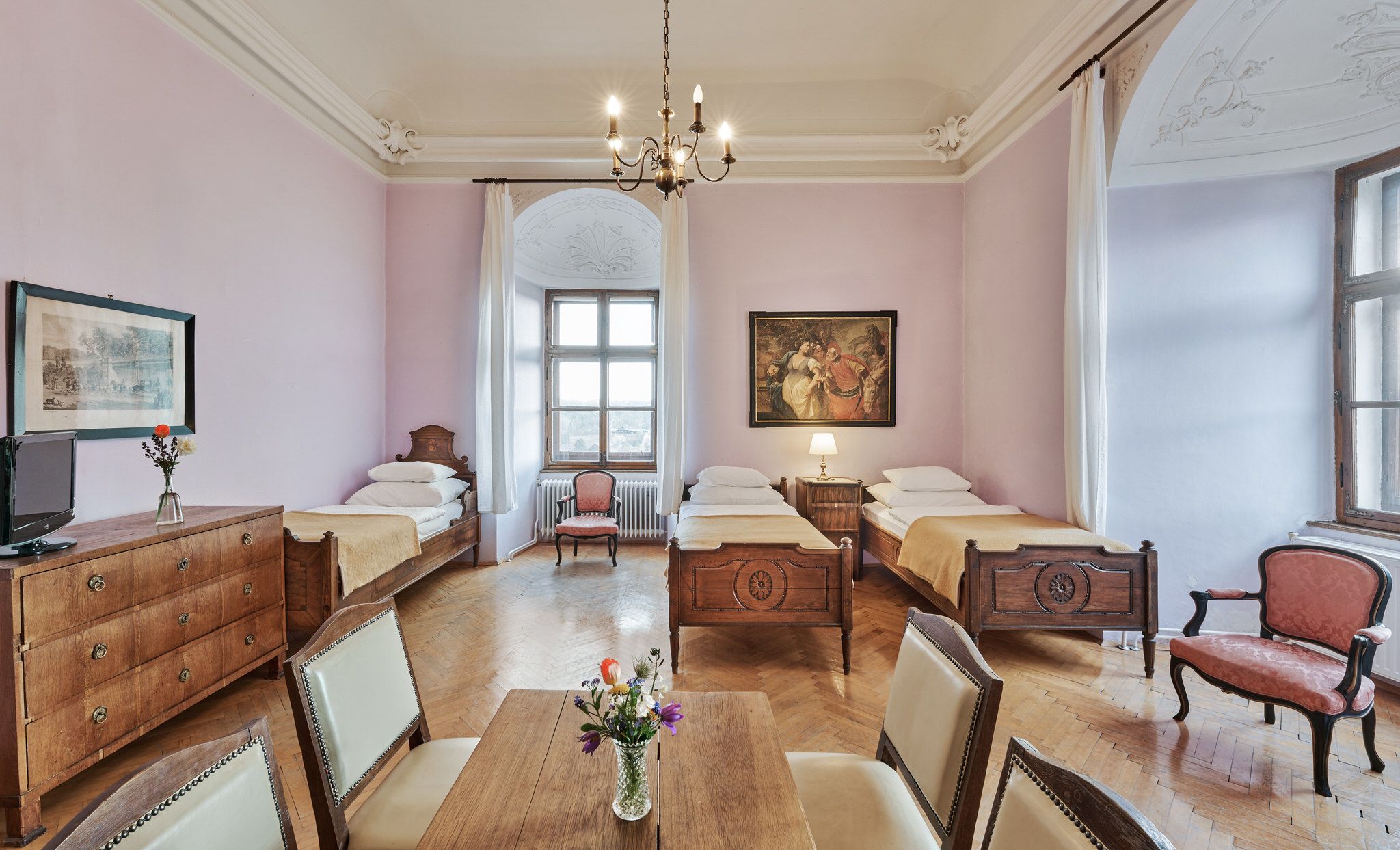 Útulné a svetlé, priateľské izby v hoteli Schloss Drosendorf, ako sa zachovali dodnes.
