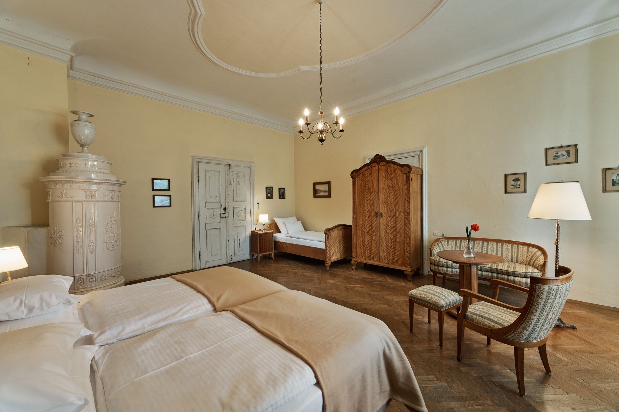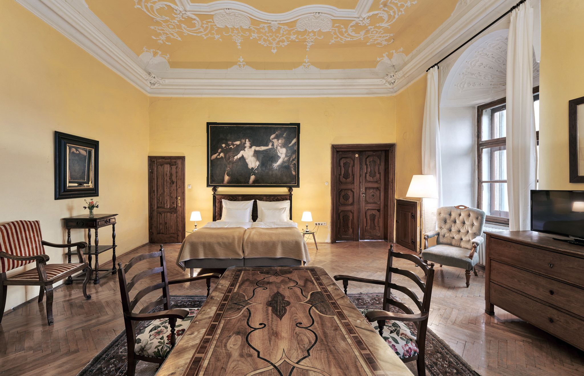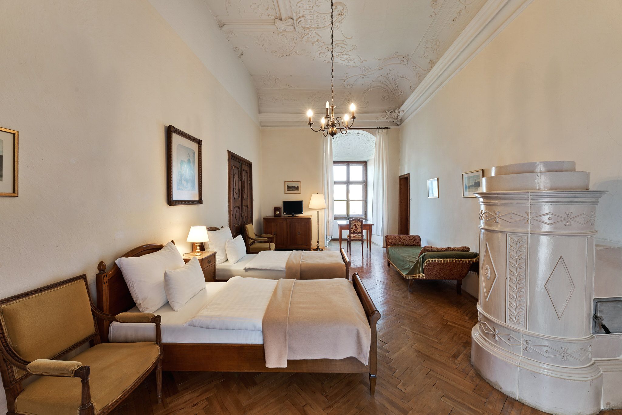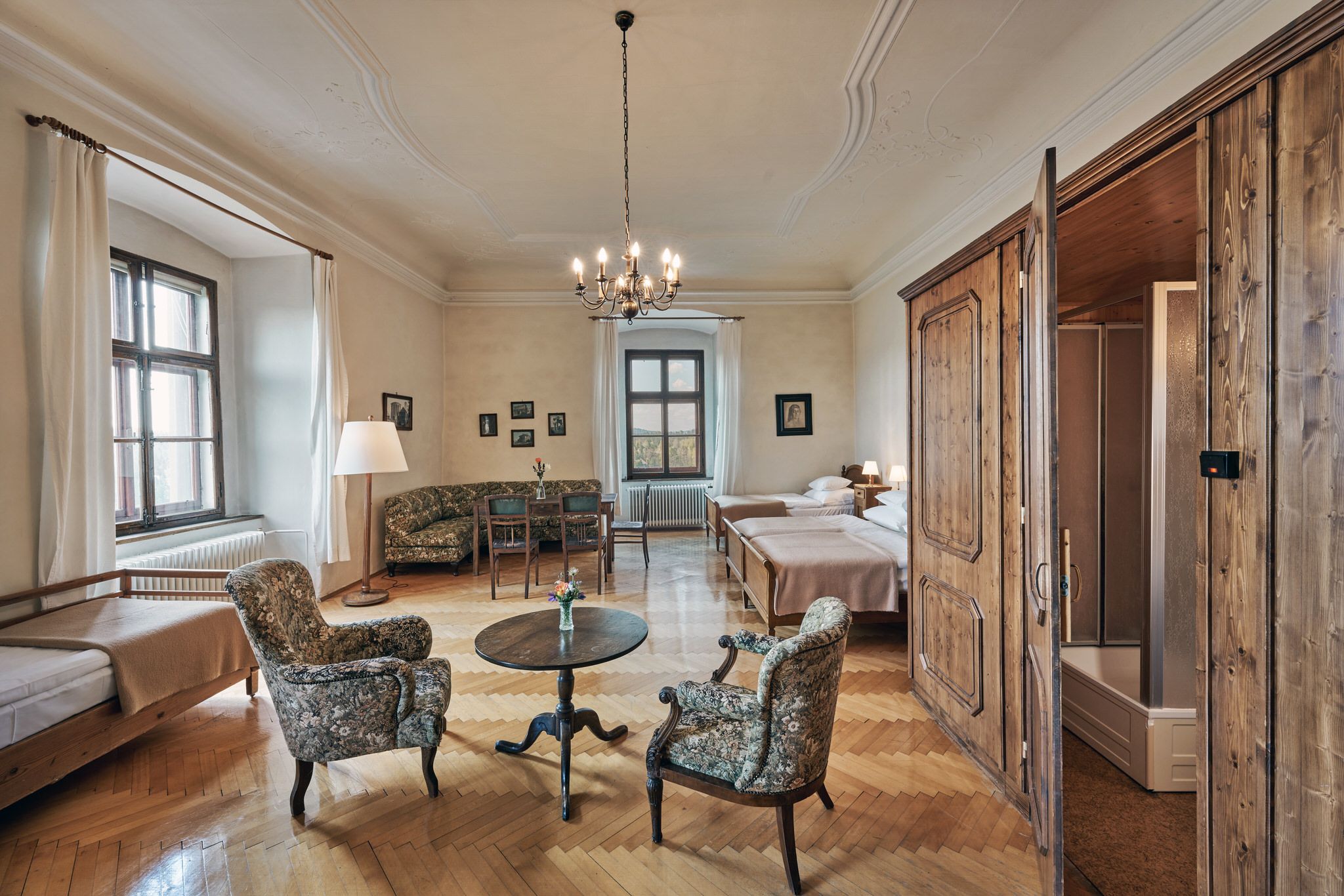 Útulné a svetlé, priateľské izby v hoteli Schloss Drosendorf, ako sa zachovali dodnes.