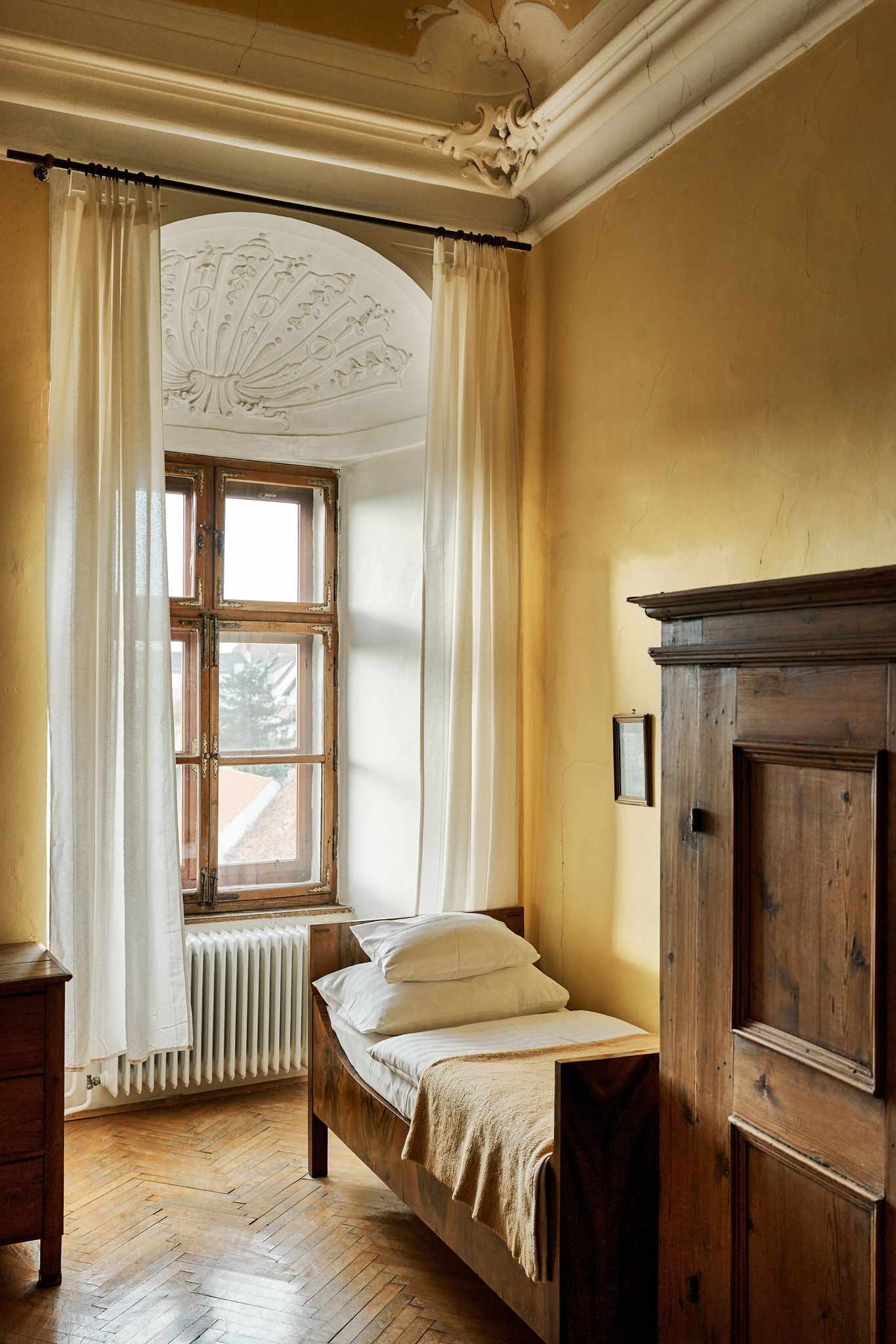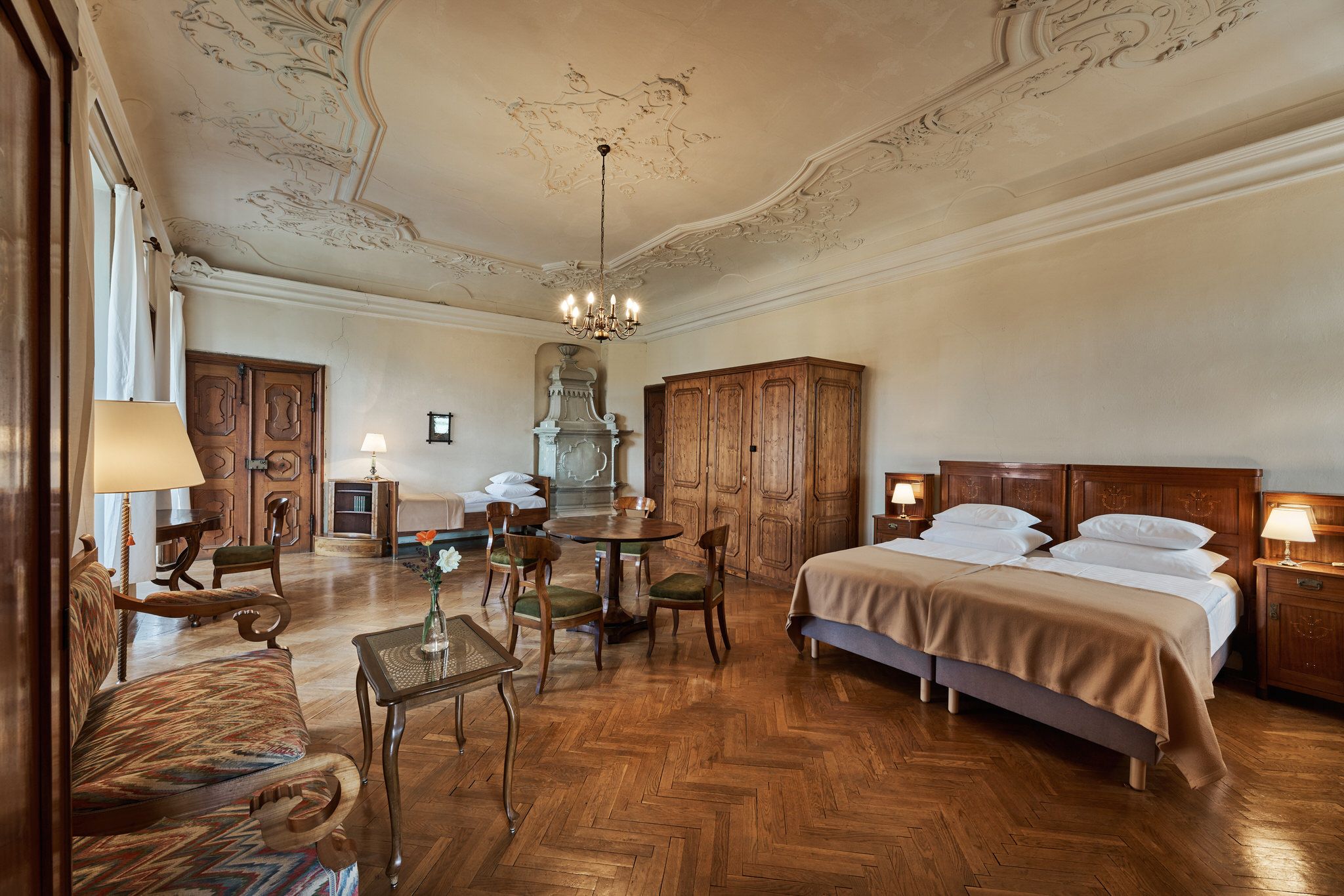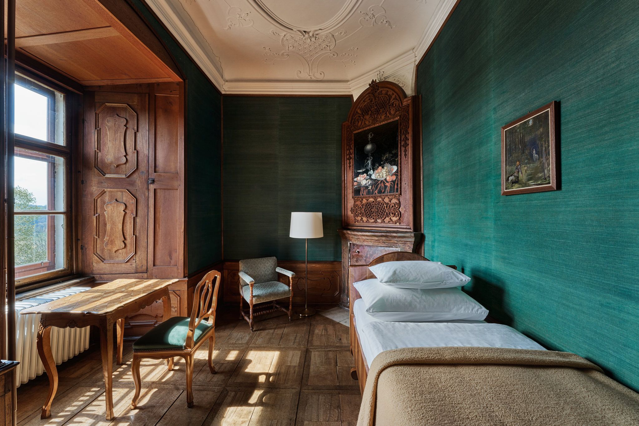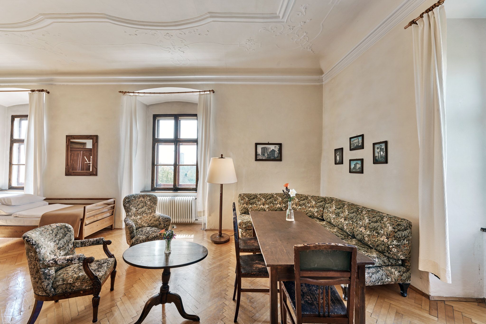 Útulné a svetlé, priateľské izby v hoteli Schloss Drosendorf, ako sa zachovali dodnes.