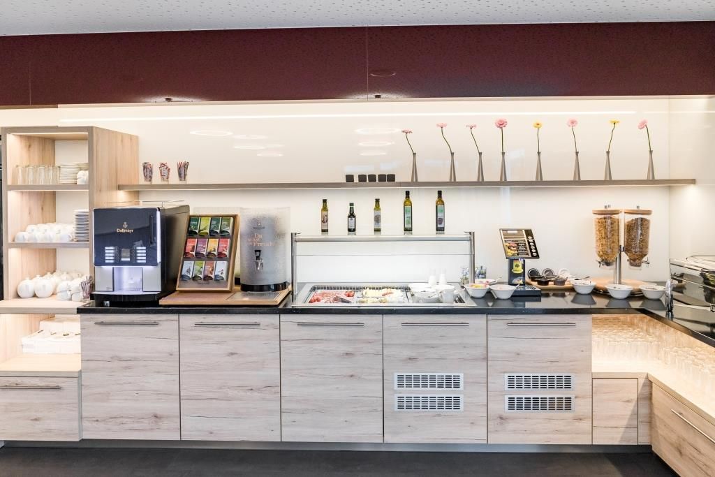 Náš bohatý raňajkový bufet s regionálnymi produktmi z bezprostredného okolia vám dodá potrebnú energiu na celý deň. Štýlový retro salónik s automatom na nápoje a občerstvenie je vám k dispozícii nepretržite.