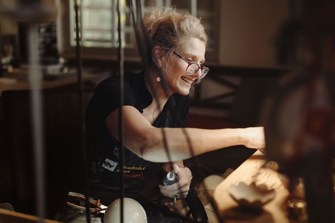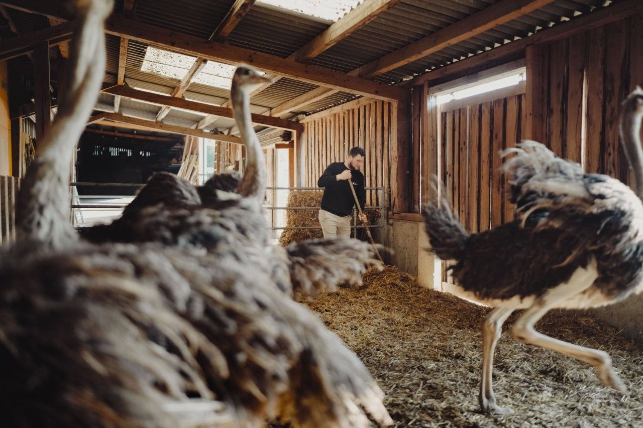V roku 1994 začala rodina Ebnerovcov svoju pštrosiu farmu s tromi pštrosími mláďatami, ktorých počet sa odvtedy zvýšil na 16 nosníc a niekoľko výkrmových zvierat. Väčšina rakúskych chovateľov pštrosov sa špecializuje na produkciu mäsa. Ebnerovci sa od začiatku zameriavajú na produkciu vajec. Z pštrosích vajec vytvárajú skutočné umelecké diela, od tienidiel na lampy až po ažurové vajcia. Každá lampa je jedinečná a vyrába sa na ich vlastnej farme. Sú "adresou" pre prázdne a plné pštrosie vajcia, napr. na párty alebo misku z pštrosích vajec. Cestovný ruch sa stal aj vedľajšou činnosťou, keďže na farme sa ponúkajú aj prehliadky so sprievodcom.